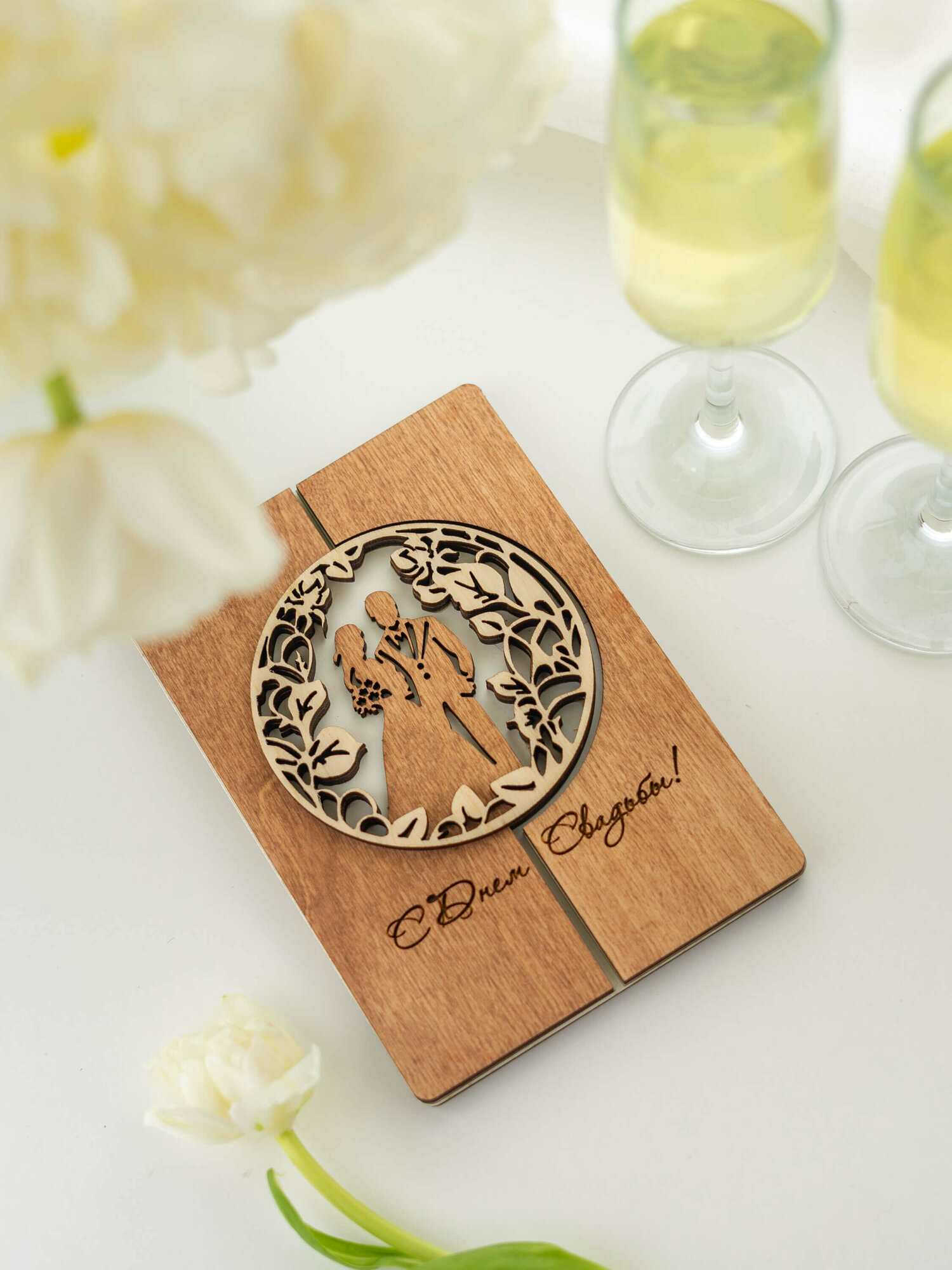 Открытка для денег на свадьбу, 17х10 см, дерево