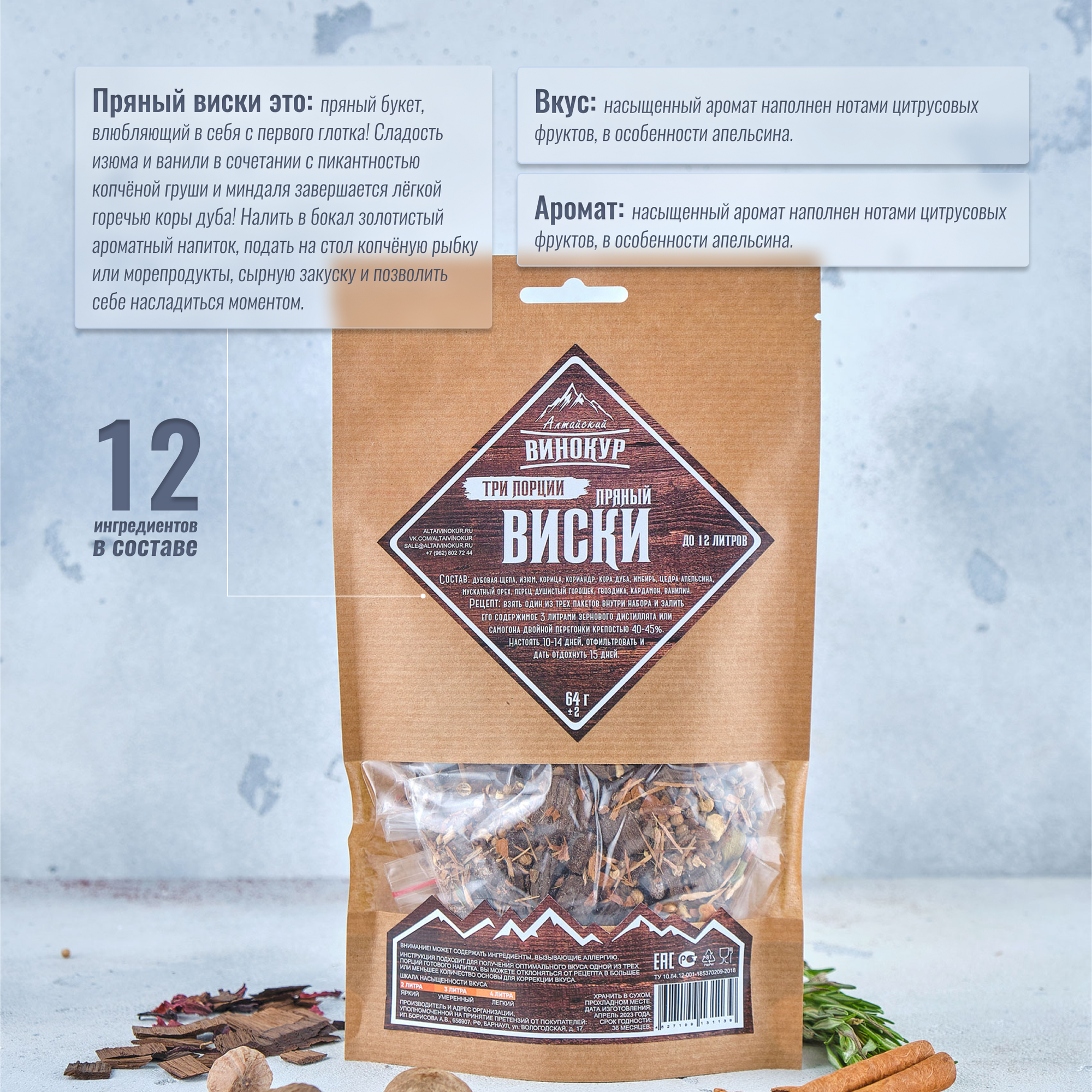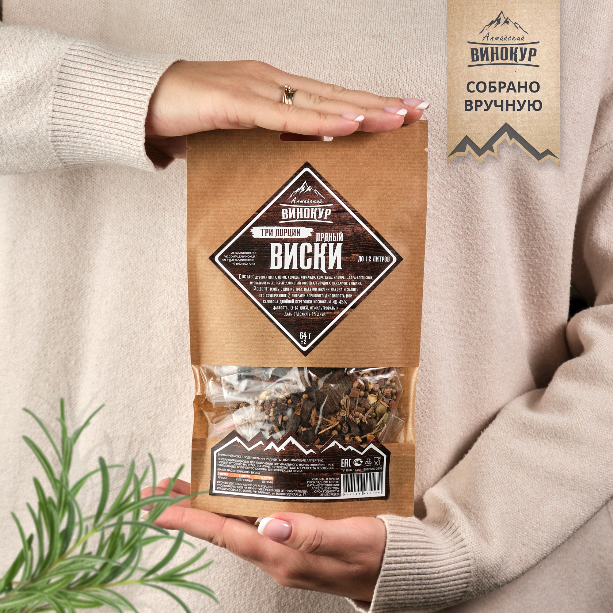 Набор трав и специй для домашних настоек на самогоне "Алтайский Винокур", Копчёный виски 3 в 1