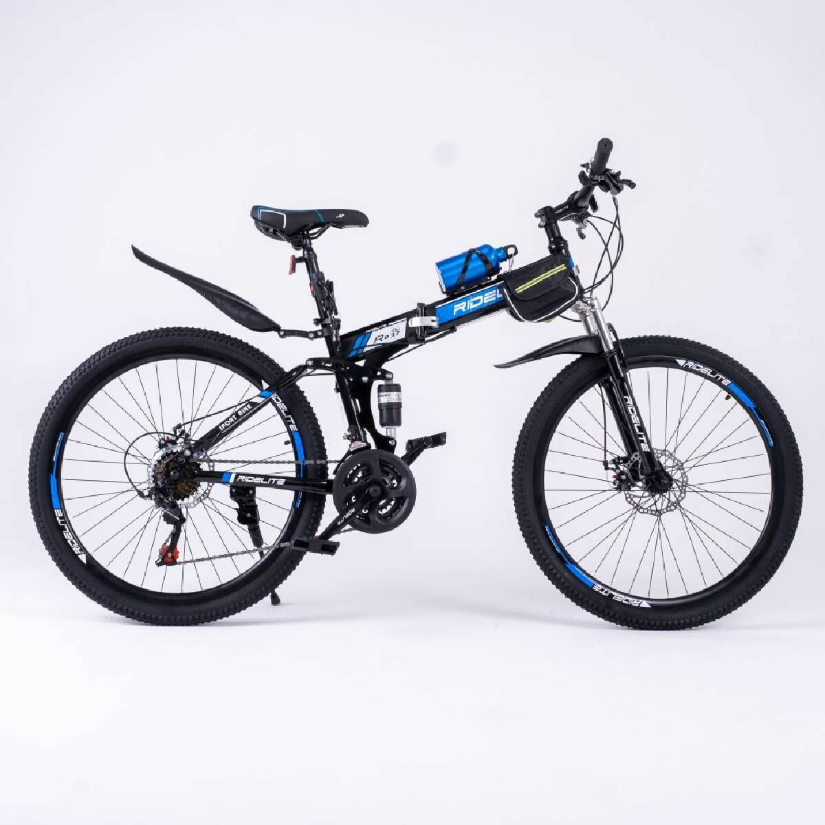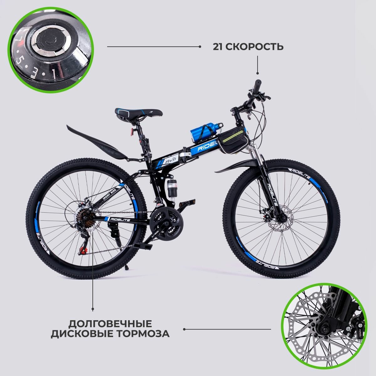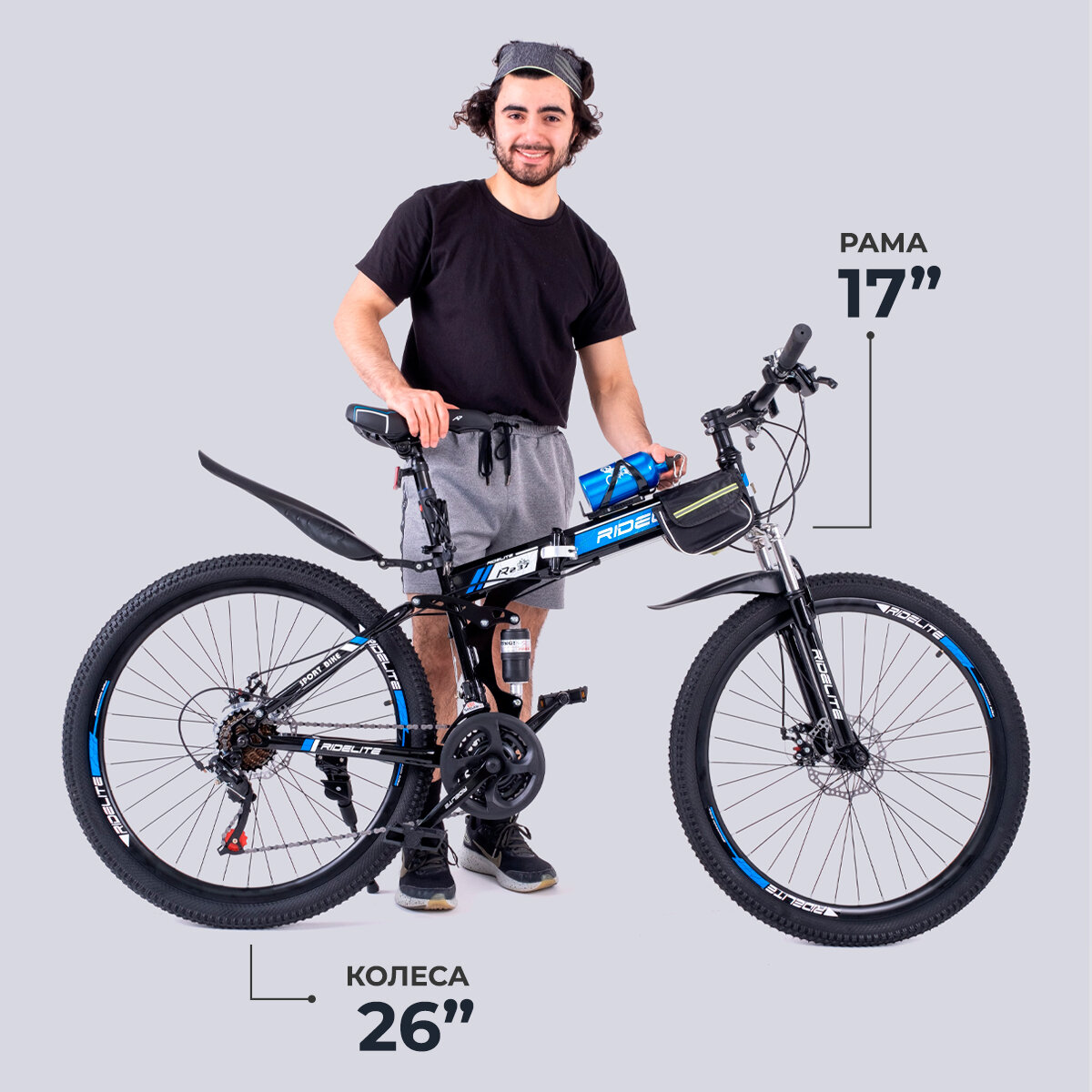 Купить Велосипед складной взрослый / подростковый мужской / женский, гравийный горный 26", RIDELITE 21ск черно-синяя рама 17", рост 140-180 см