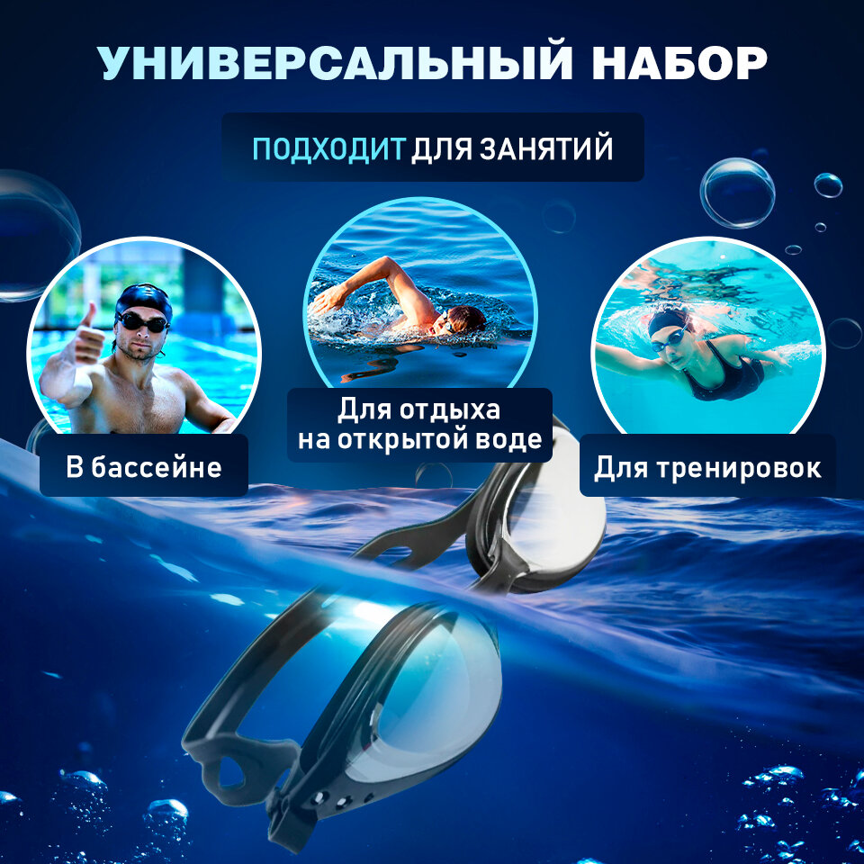 Спортивные очки для плавания/ Набор с берушами и зажимом для носа/ для взрослых интересное: