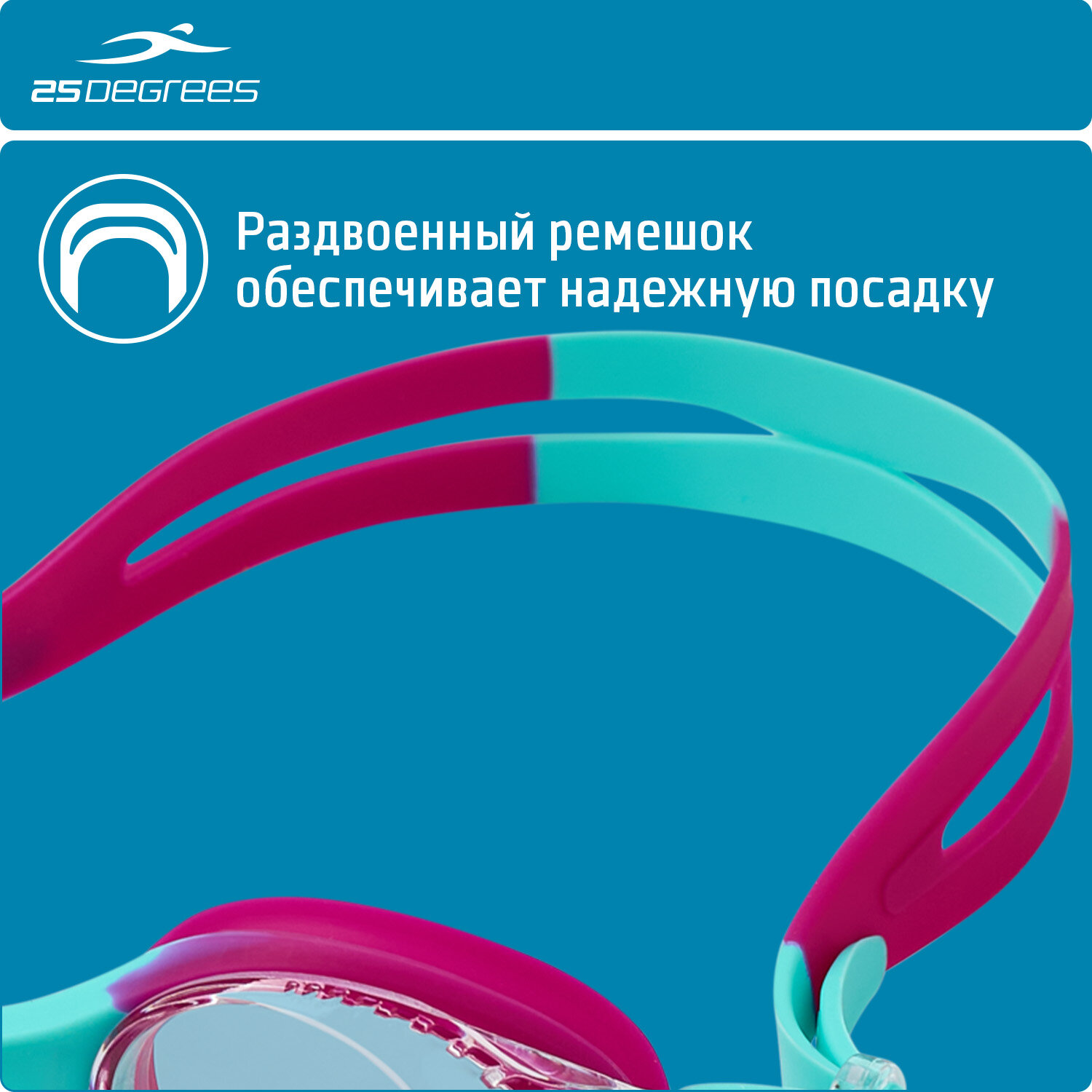 СохранитьОчки для плавания 25DEGREES Motion фиолетовые бирюзовые с зажимом интересное: