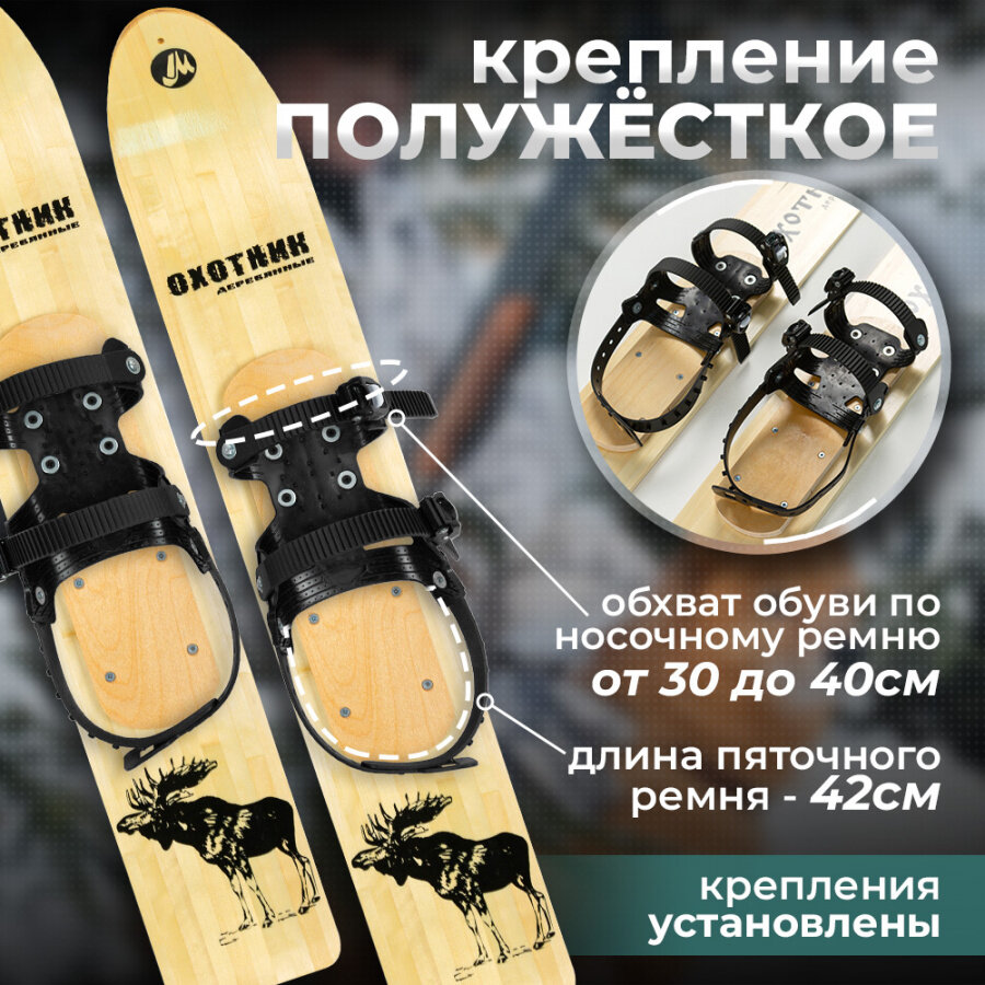 Купить Лыжи охотничьи деревянные Маяк Охотник 90 х 15 см с полужестким креплением и чехлом