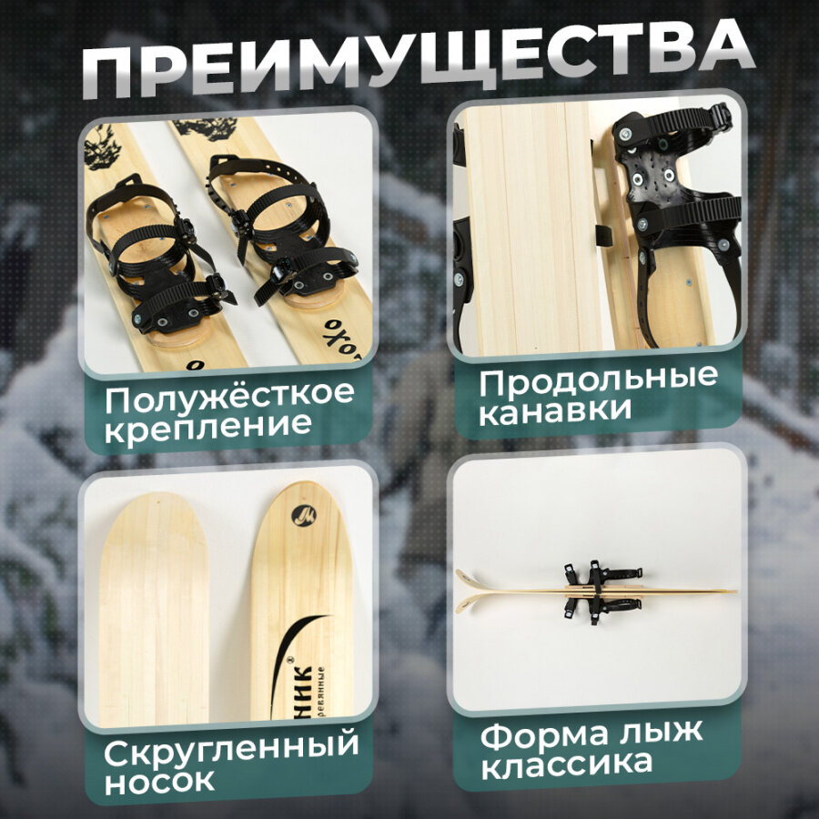 СохранитьЛыжи охотничьи деревянные Маяк Охотник 90 х 15 см с полужестким креплением и чехлом интересное:
