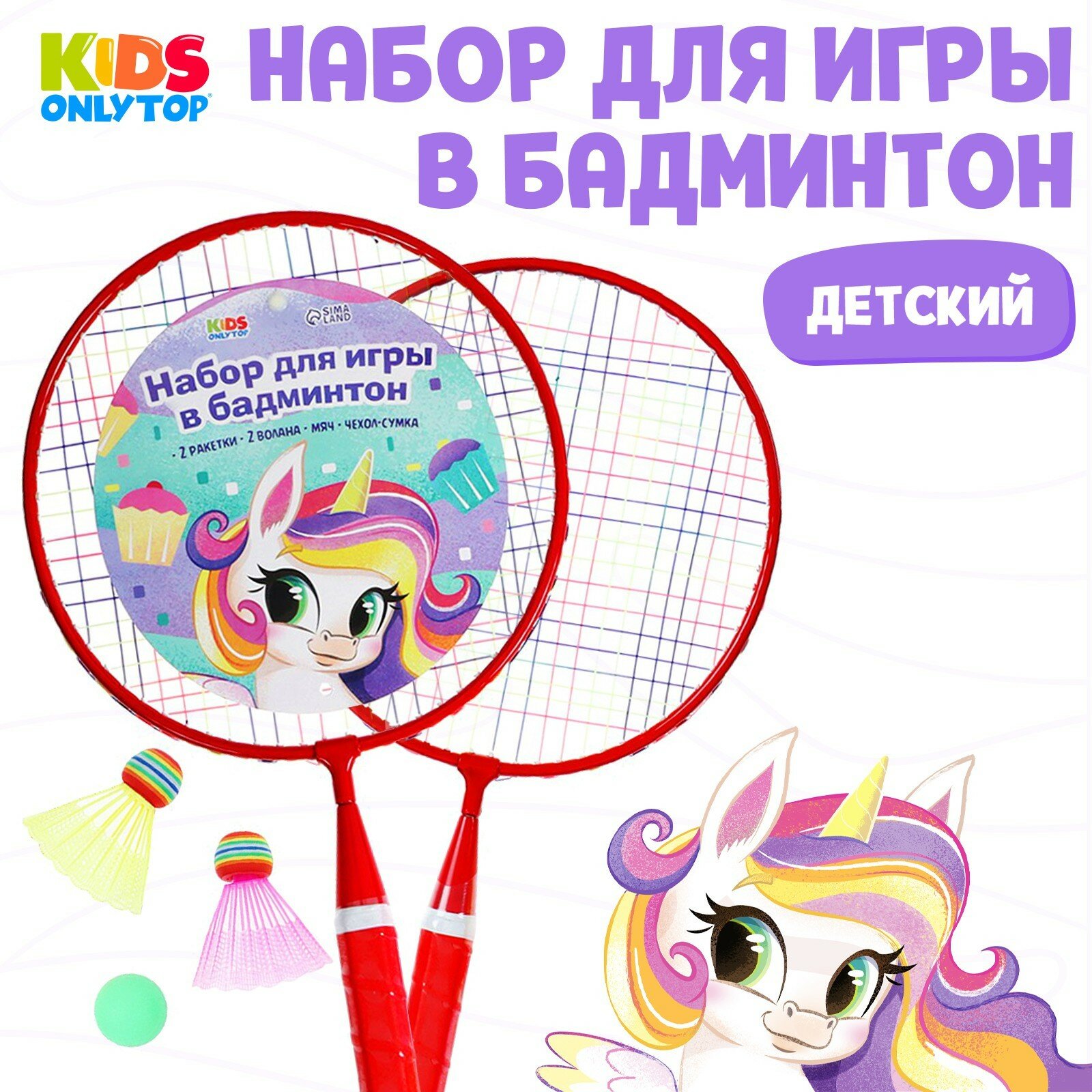 Набор для бадминтона ONLYTOP «Пони»: 2 ракетки 44 см, 2 волана, мяч, чехол, цвет красный