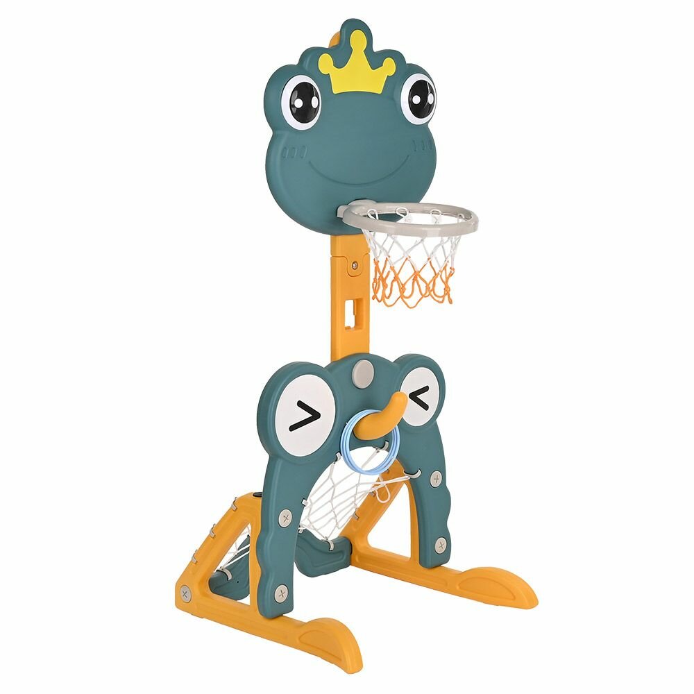 Баскетбольное кольцо детское с кольцебросом и футбольными воротами Pituso Лягушка Green/Зеленый (52*145h) интересное: