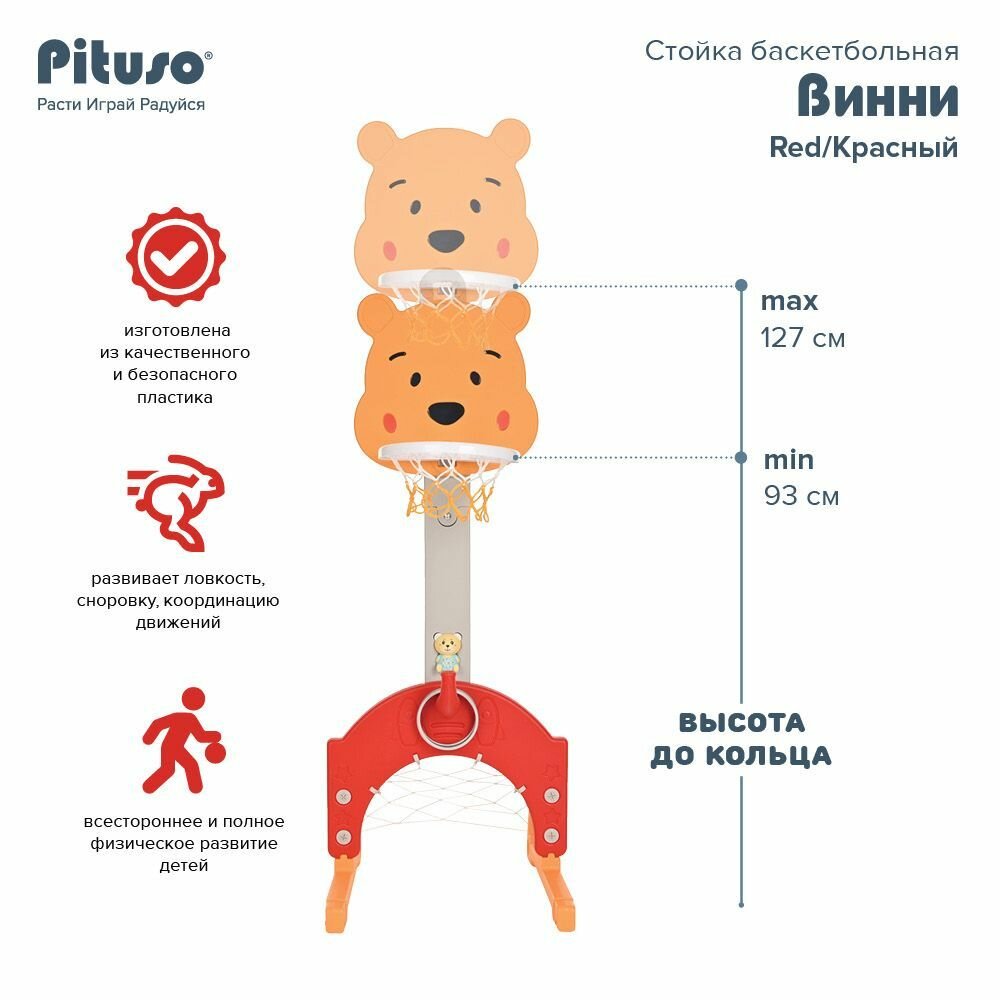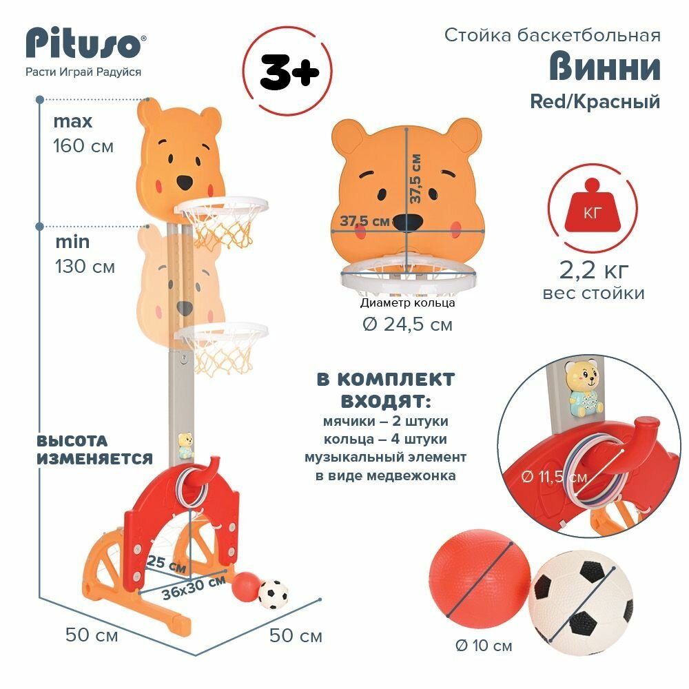 Купить Баскетбольное кольцо детское Pituso Винни, стойка с кольцебросом и футбольными воротами, красный