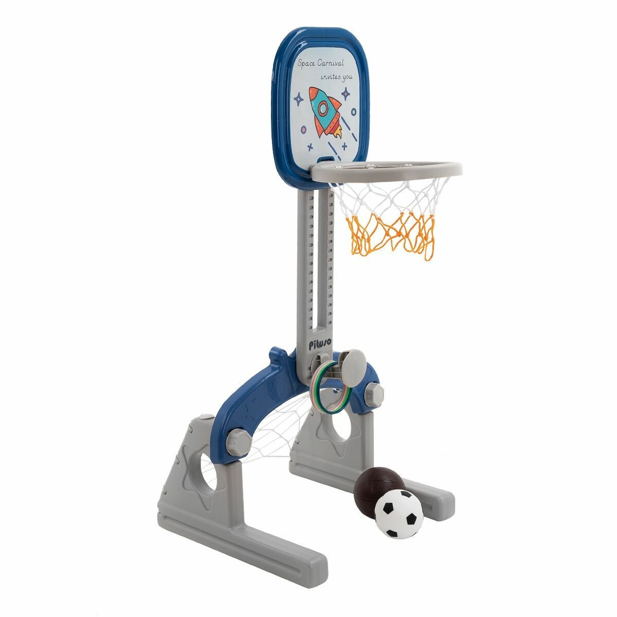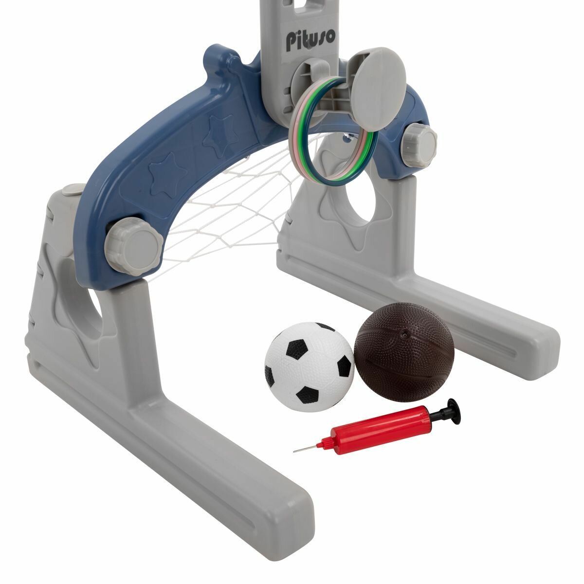 Купить Стойка баскетбольная Pituso Joy с дартсом на магнитах, кольцебросом и футбольными воротами, Blue/Синий