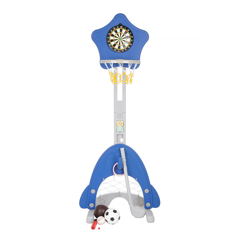 Баскетбольное кольцо детское Pituso Звезда, стойка с кольцебросом и футбольными воротами, синий интересное: