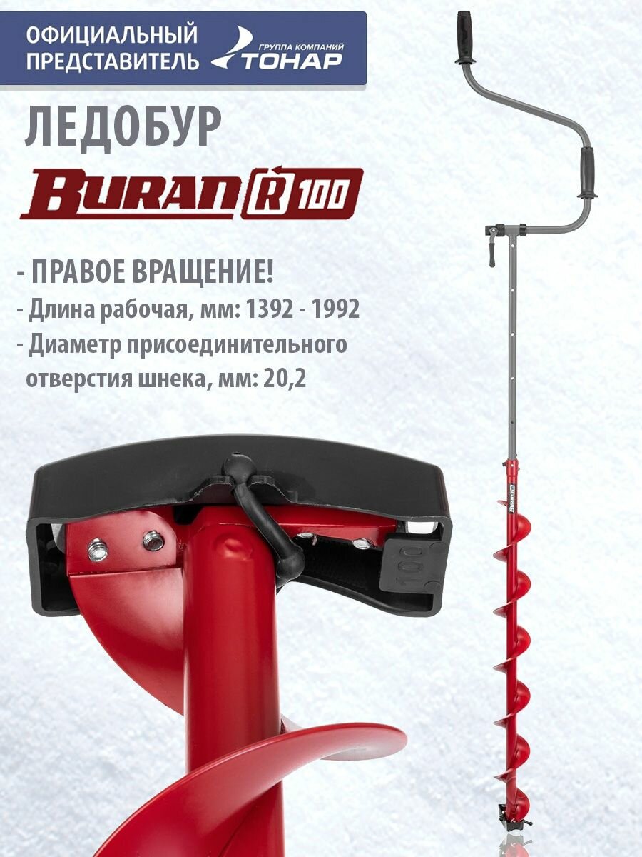 Купить Ледобур BURAN 100R правое вращение, цельнотянутый шнек (LB-100R) Тонар