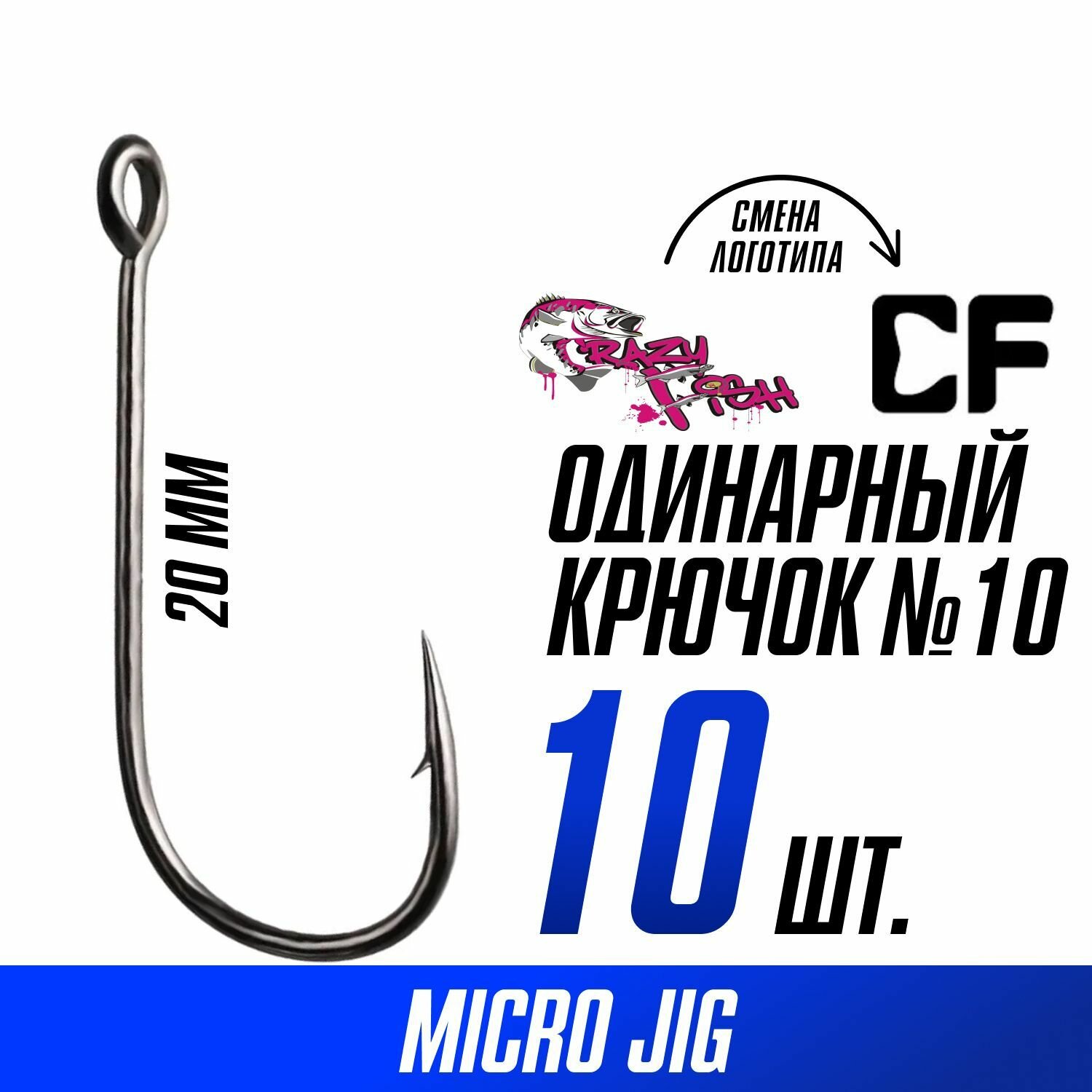 Купить Крючки одинарные Crazy Fish Micro Jig Joint Hook №10 длина 16 мм 10 шт.