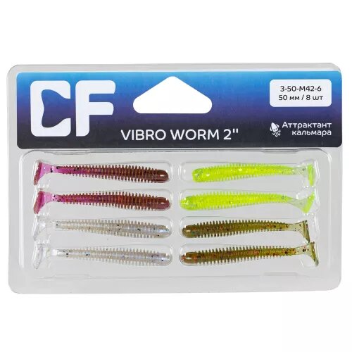 Силиконовая приманка CF Vibro Worm 2 3-50-М42-6 5см. 8шт.