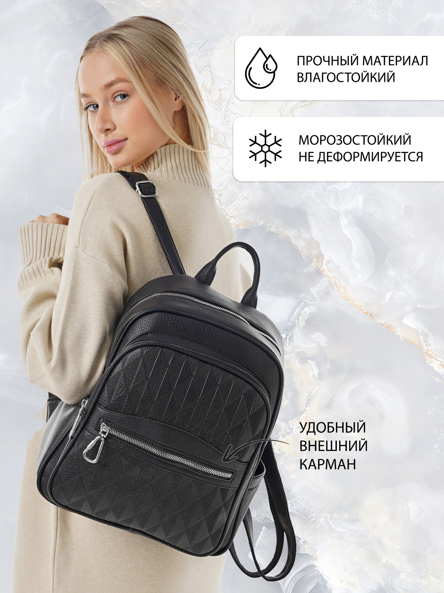 "Стильный женский черный рюкзак из экокожи", бренд Shoshana интересное: