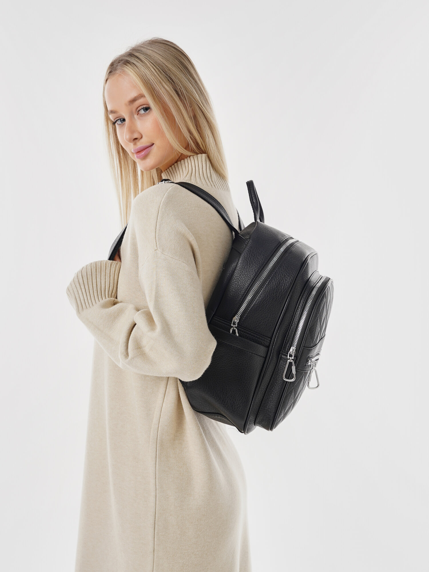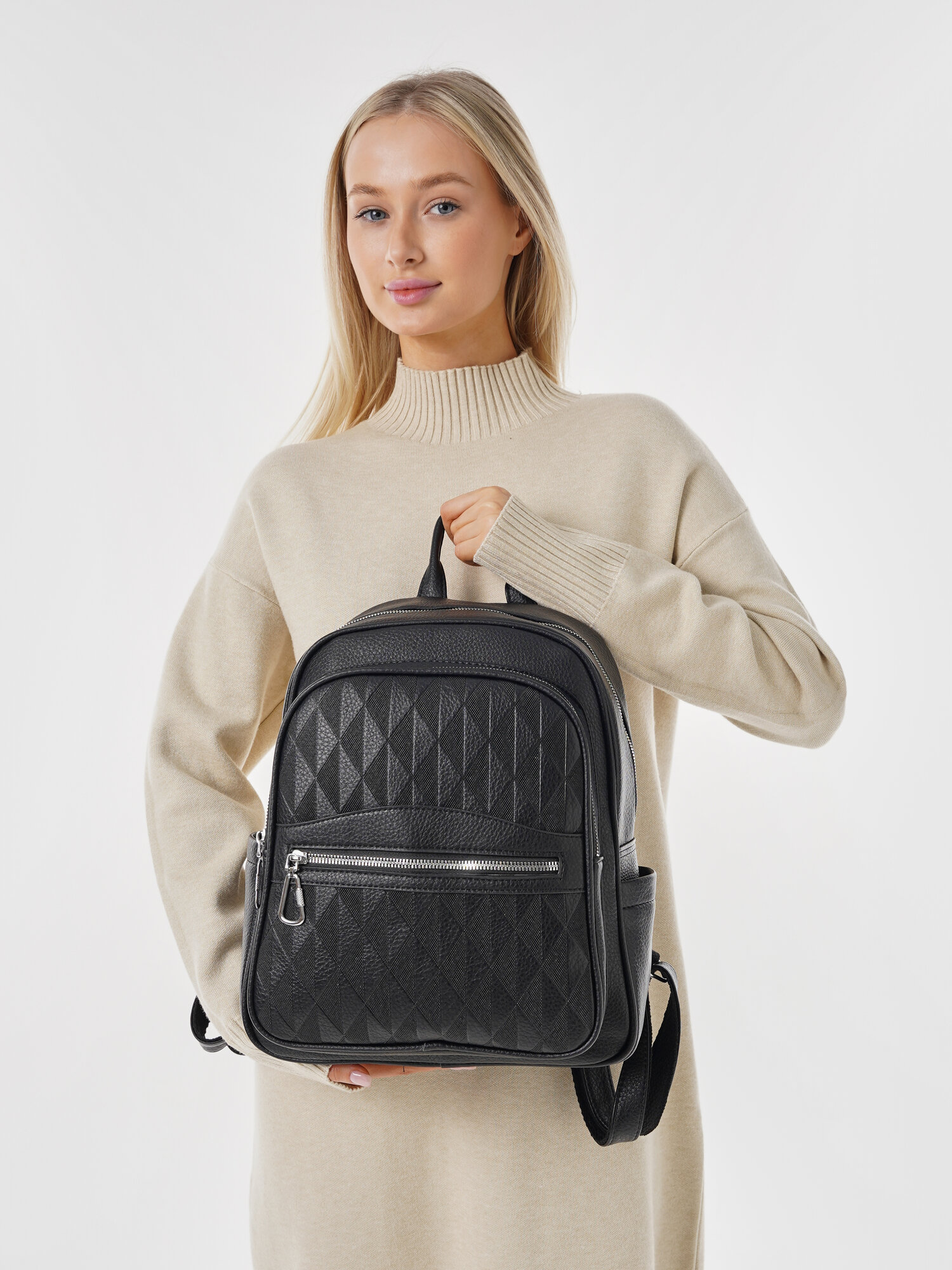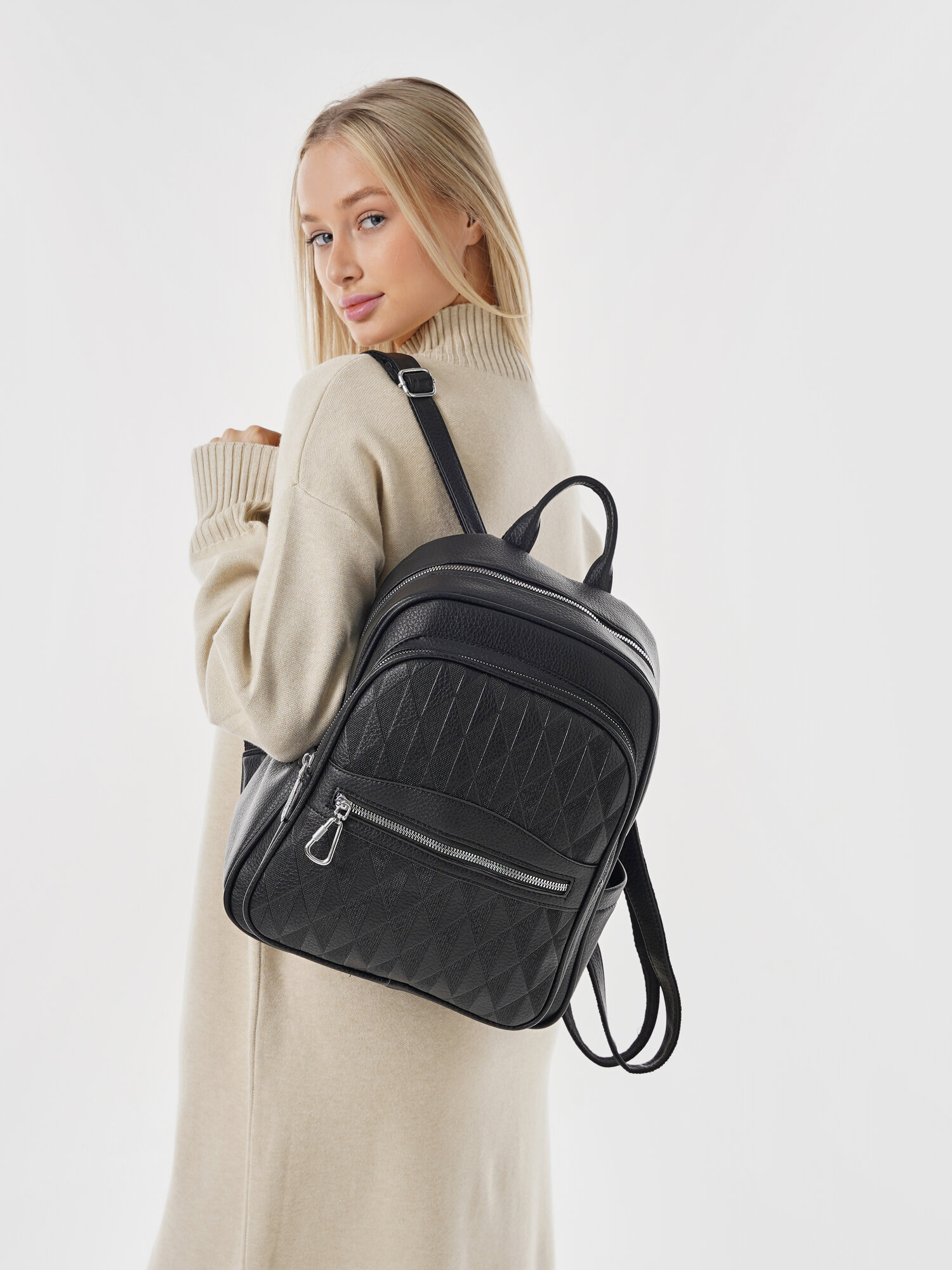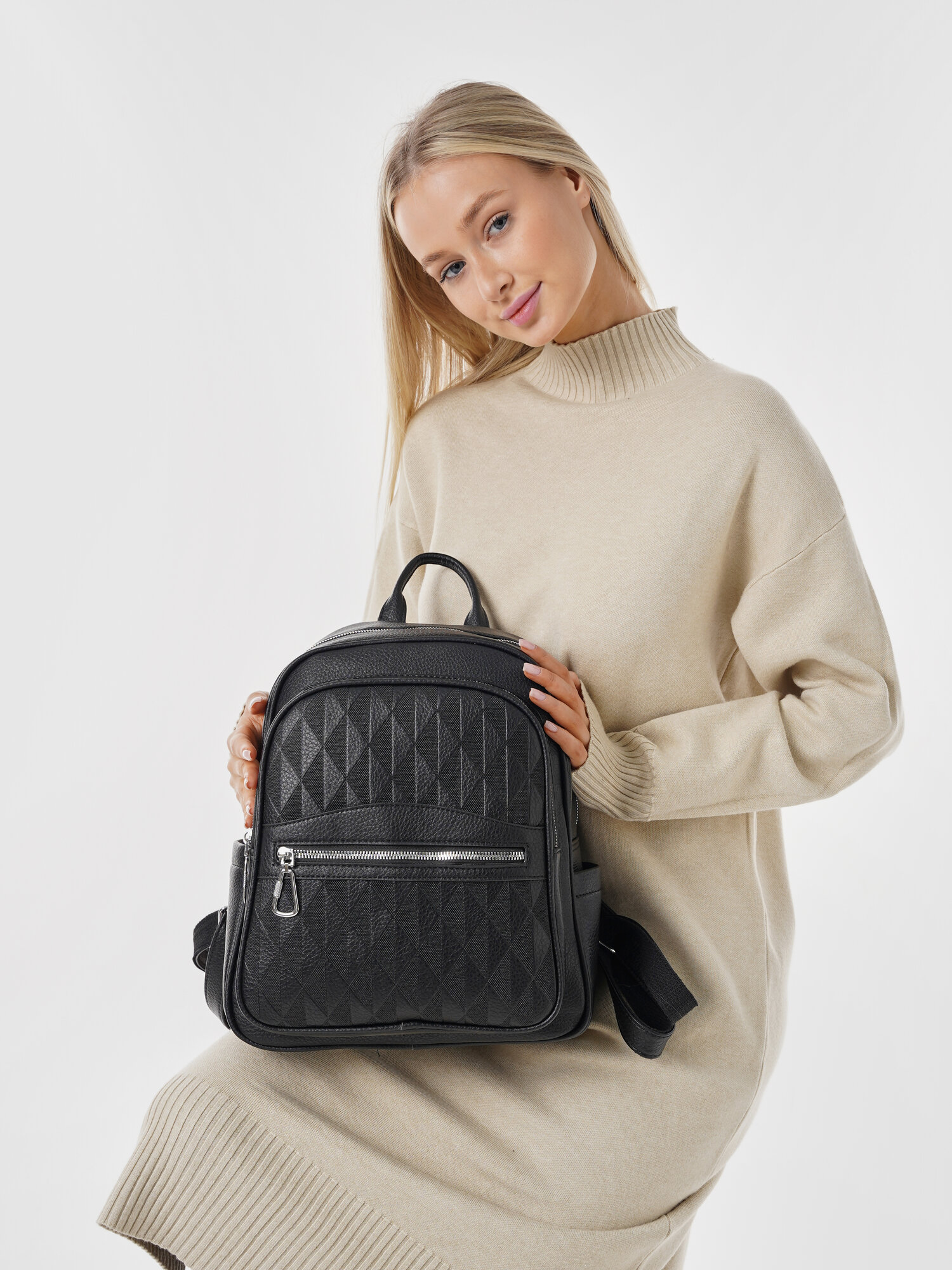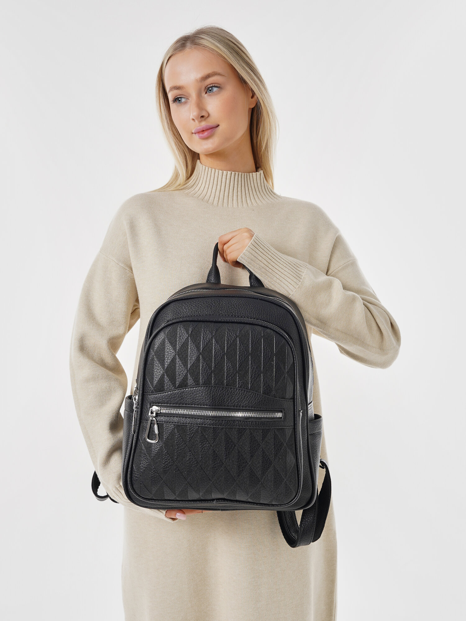 Купить "Стильный женский черный рюкзак из экокожи", бренд Shoshana