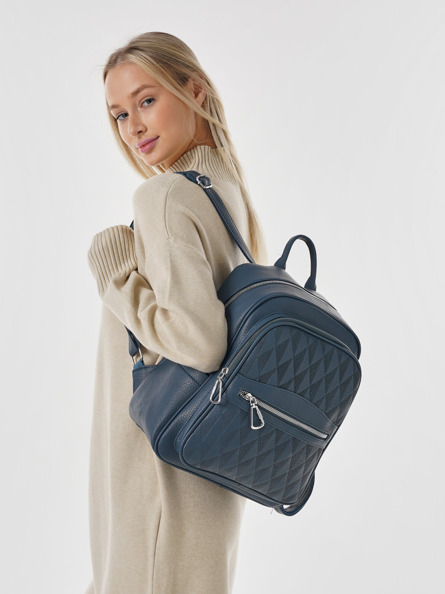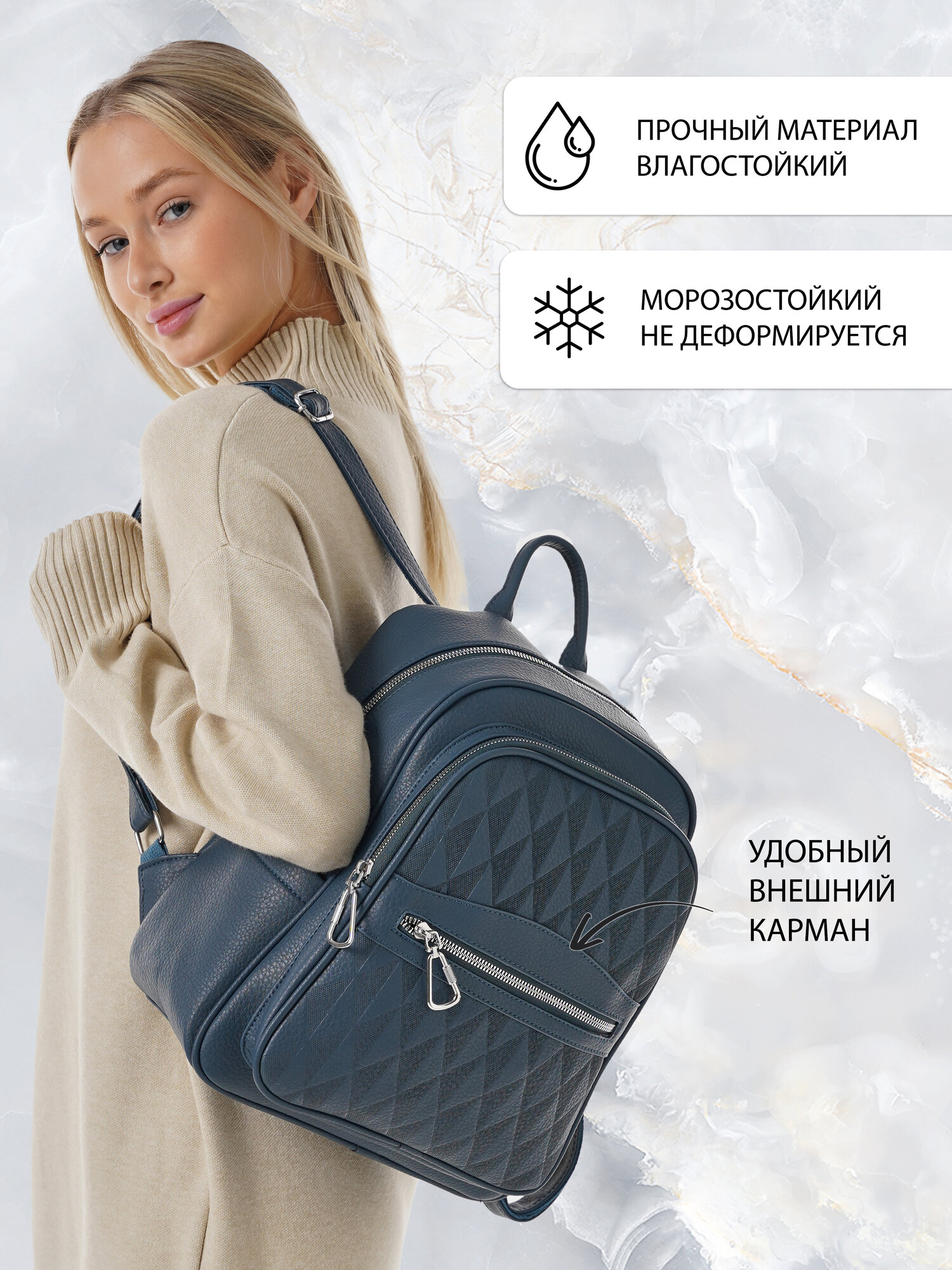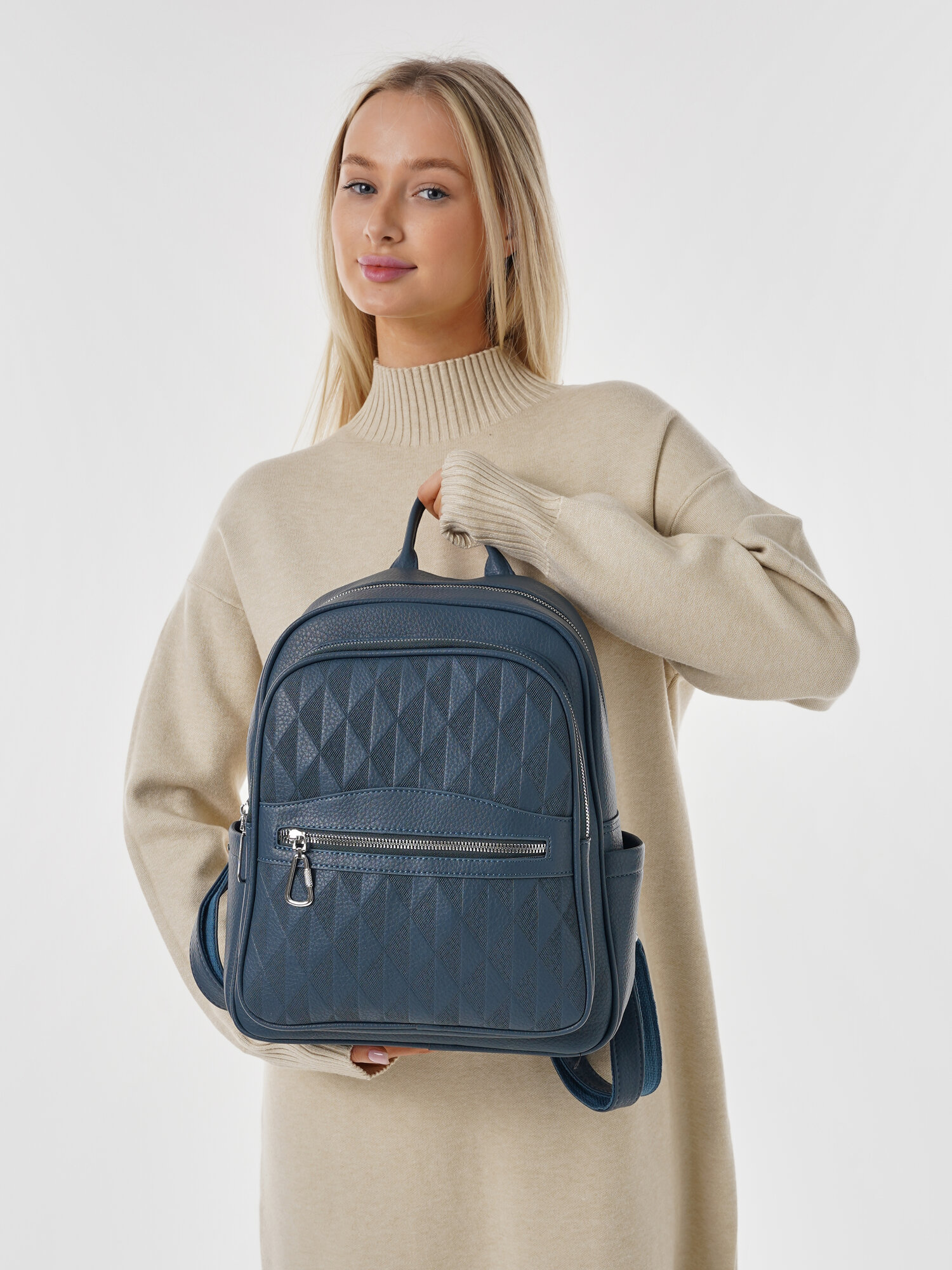 Купить "Стильный женский синий рюкзак из экокожи", бренд Shoshana