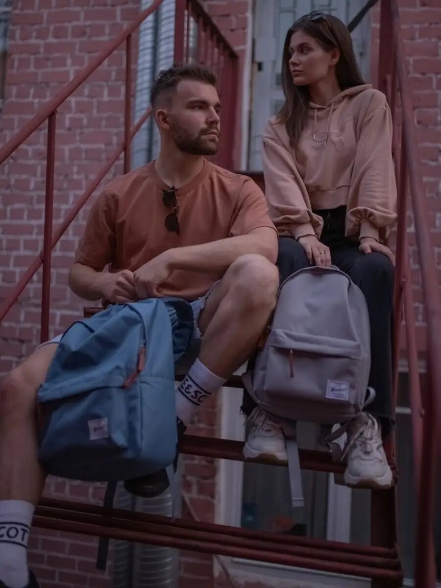 Рюкзак городской спортивный женский мужской школьный для ноутбука, для мальчика для девочки, бежевый, черный