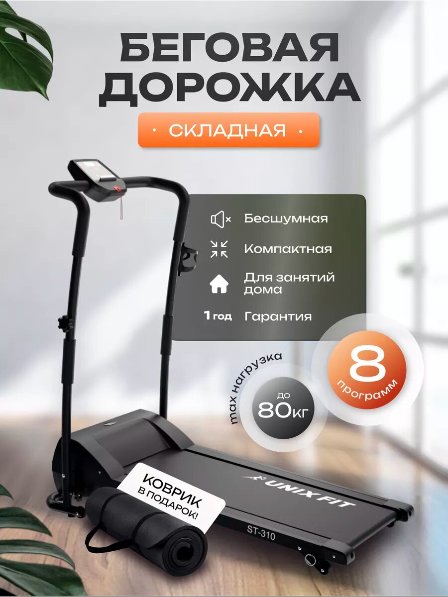 Беговая дорожка Unixfit ST-310, складная, электрическая, амортизация, до 80кг, 9км/ч интересное: