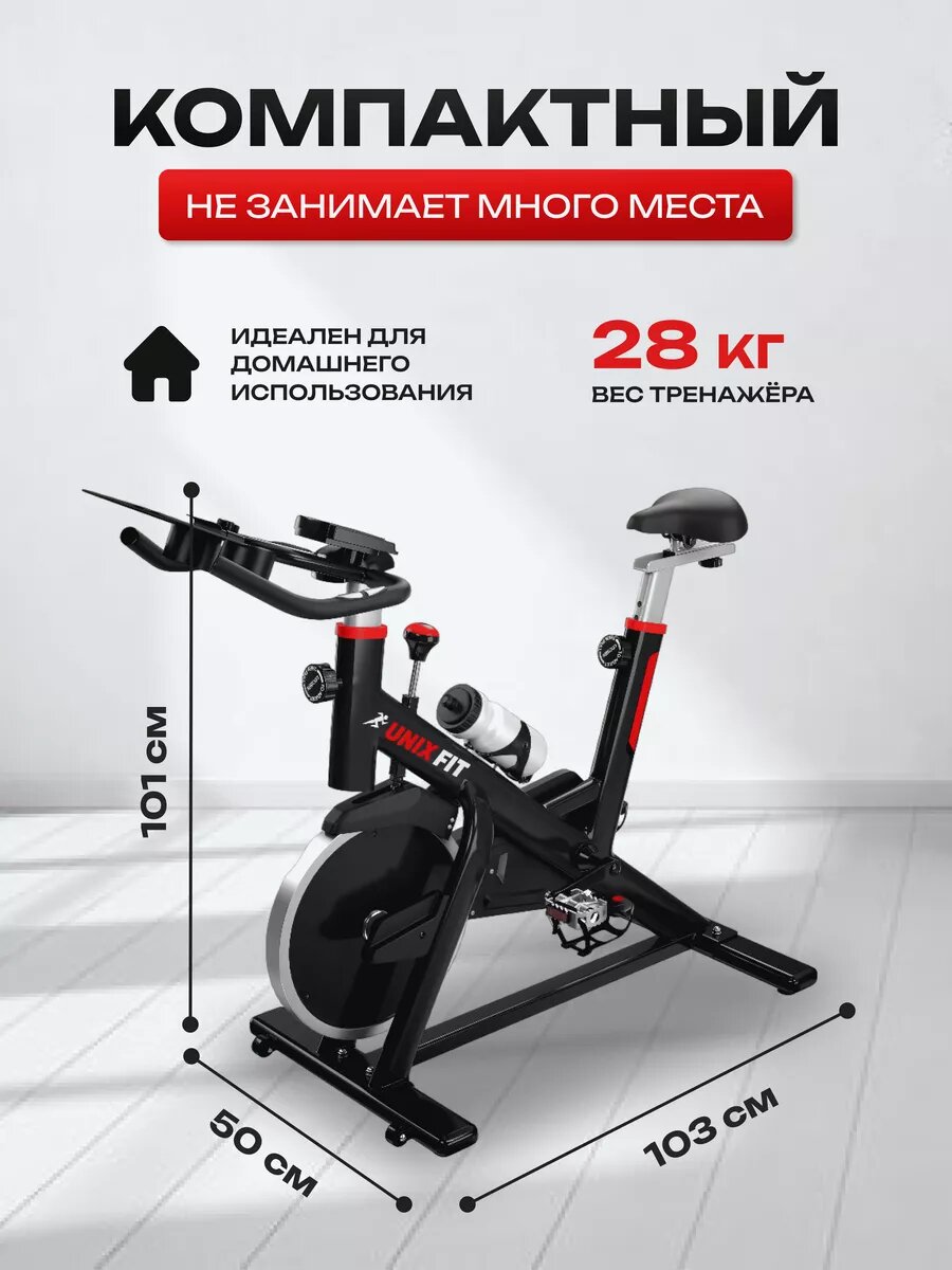 Велотренажер спин-байк UNIX Fit SB-490PRO для дома, колодочная система нагружения, маховик 15 кг UNIXFIT