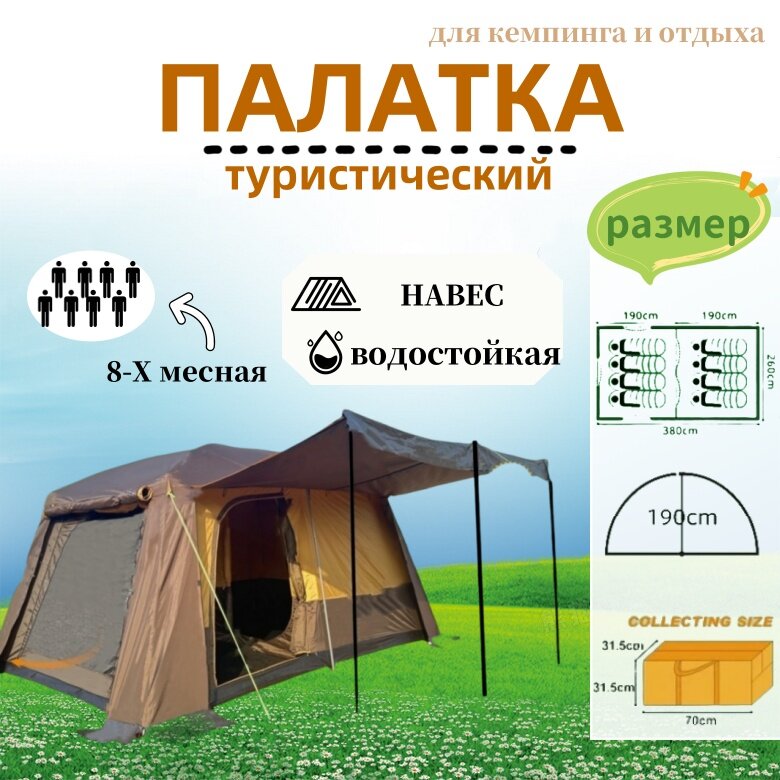 Палатка туристическая 8 местная летняя с тамбуром, шатер с москитной сеткой для кемпинга, Подходит для путешествии и рыбалки, палатка для рыбалки