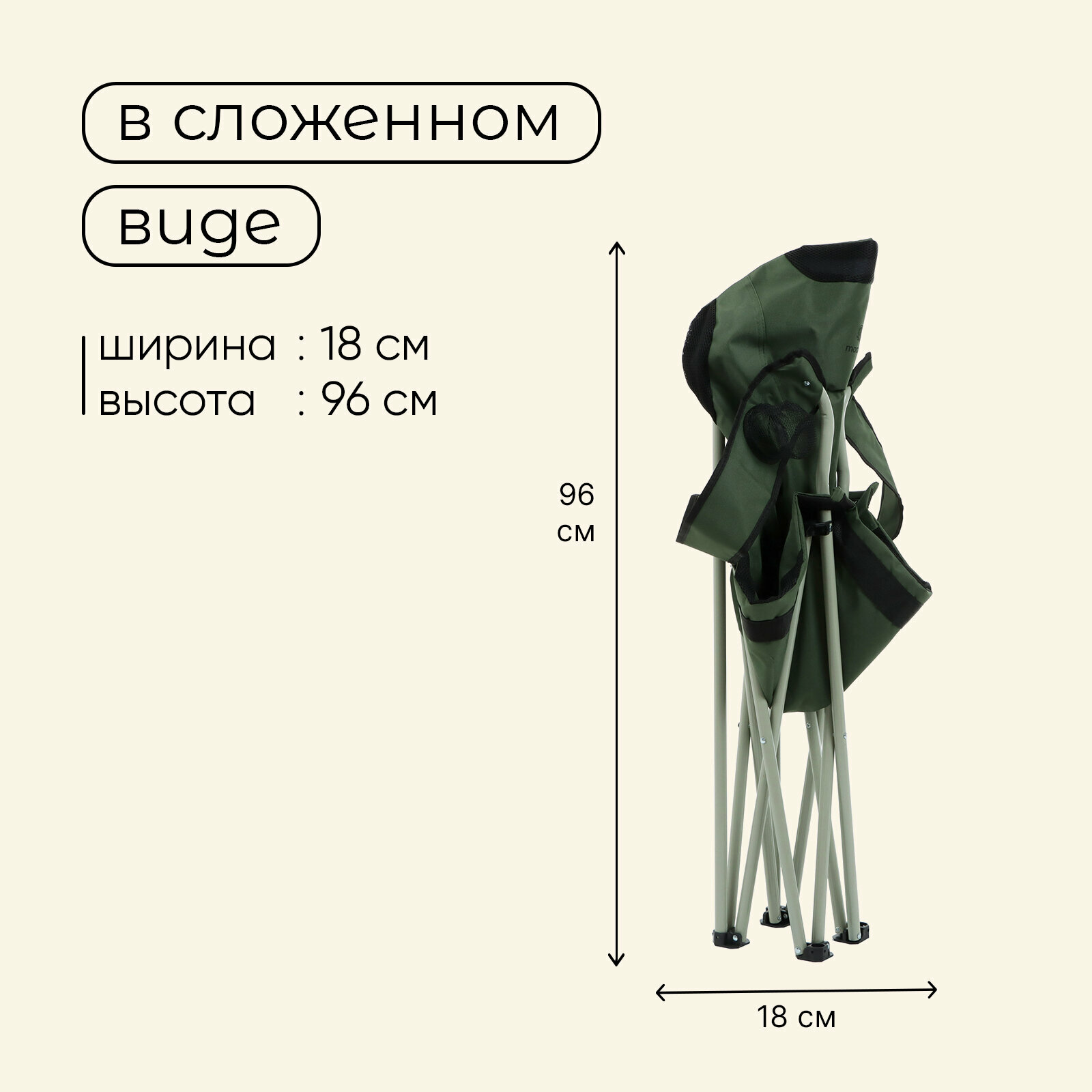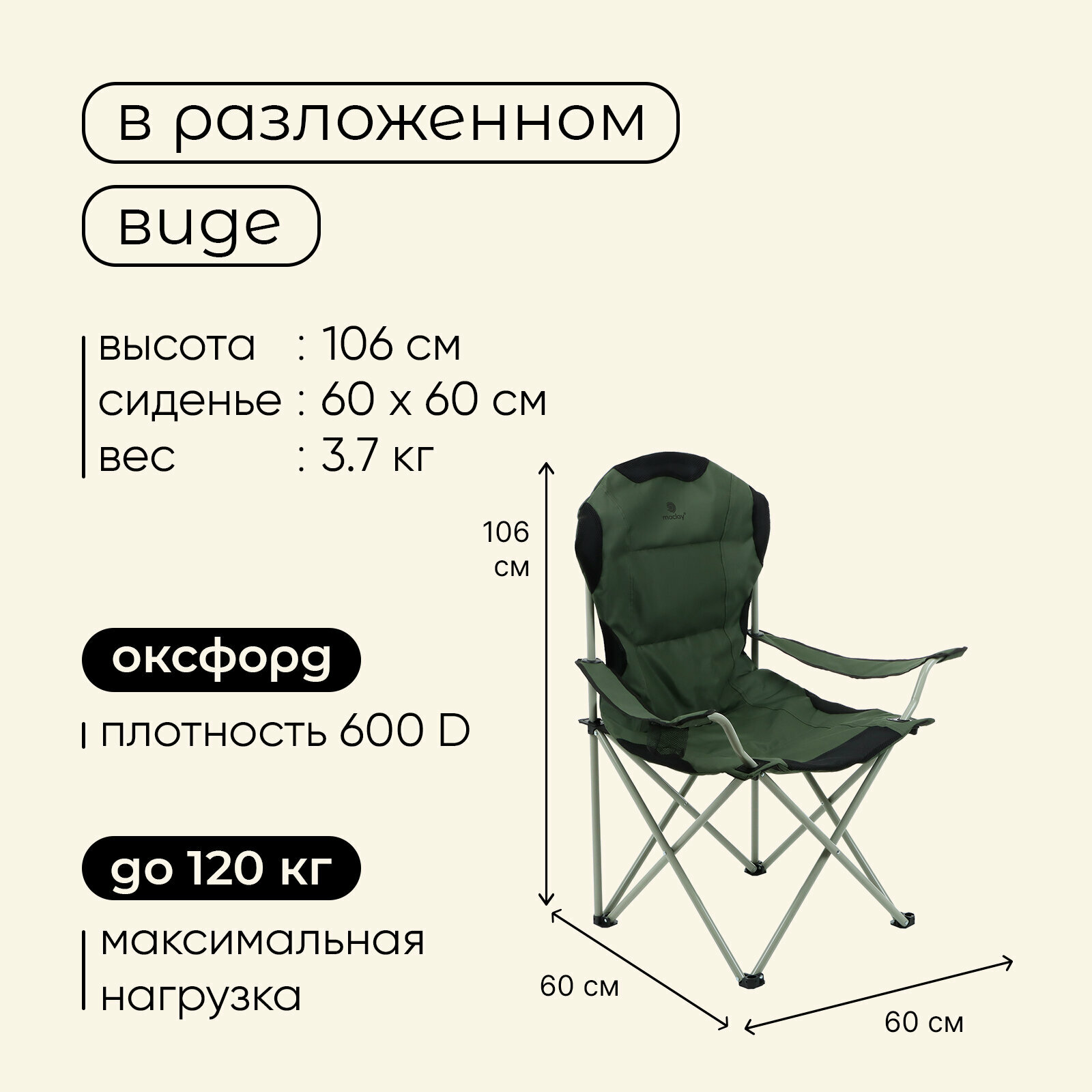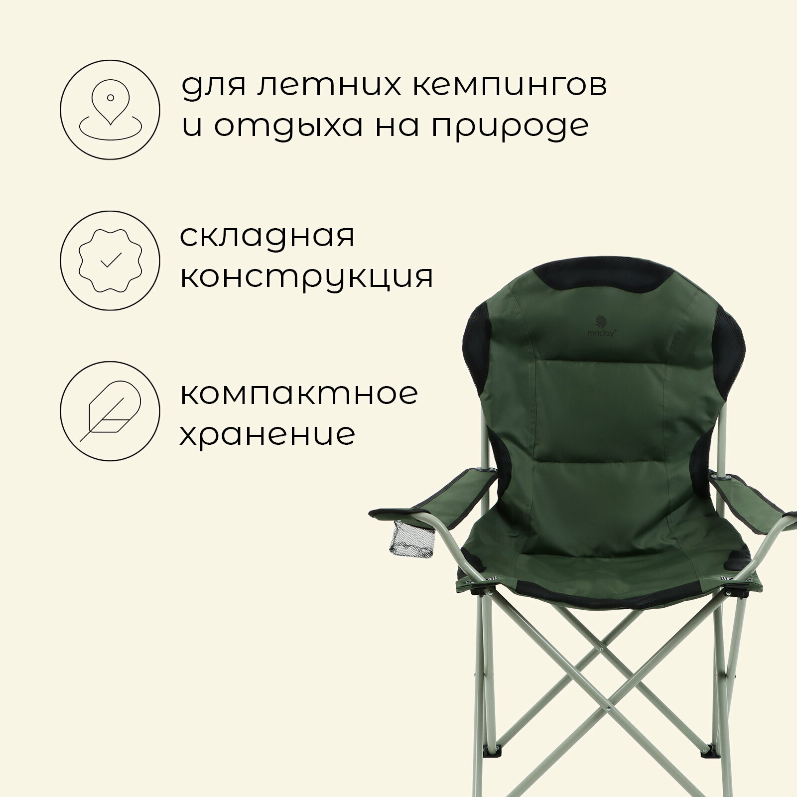 Кресло складное с подстаканником, 60 х 60 х 106 см, до 120 кг, цвет зелёный 10218759 интересное: