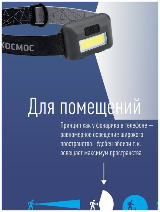Фонарь налобный Космос H101-COB, широкий рабочий свет