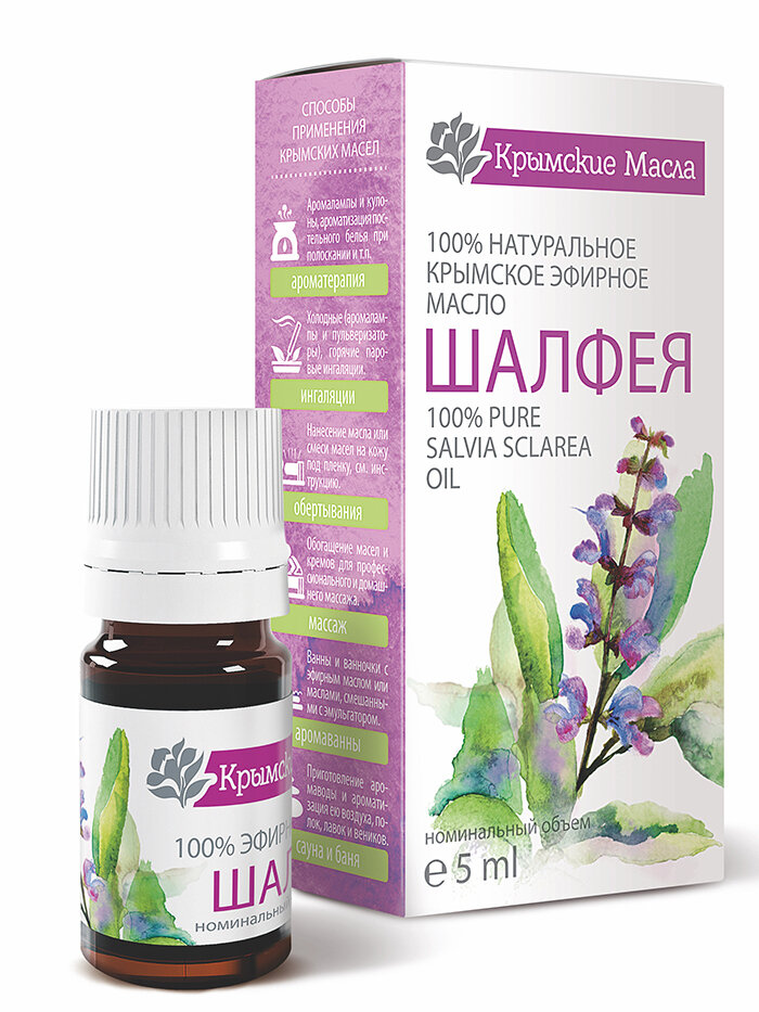 Крымские масла, Натуральное эфирное масло шалфея мускатного 5 мл интересное: