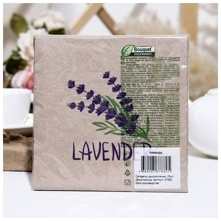 Салфетки бумажные BOUQUET Крафт 25шт 2 слоя Лаванда 33*33 см