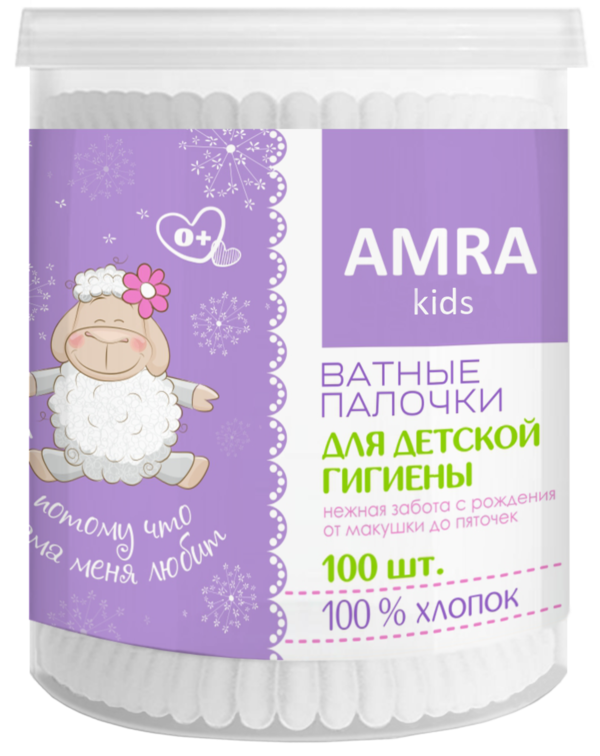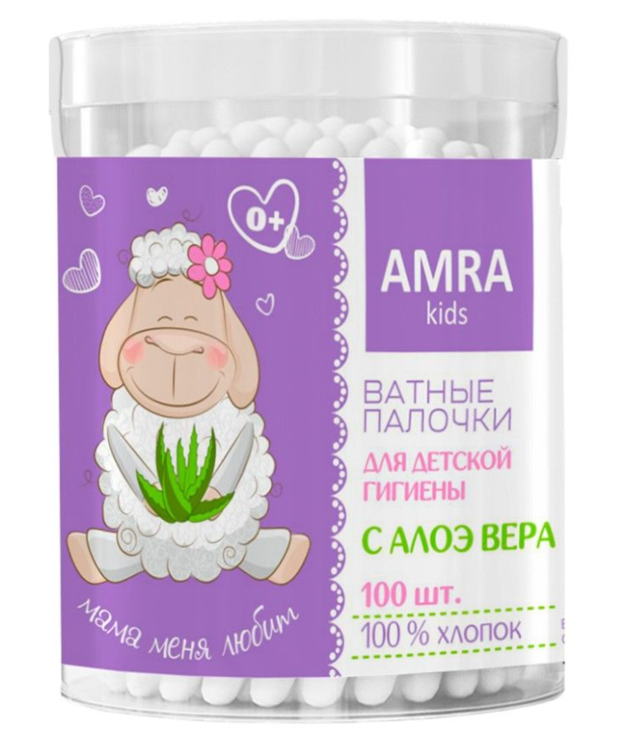Купить AMRA Ватные палочки для детской гигиены с алоэ вера 100 шт