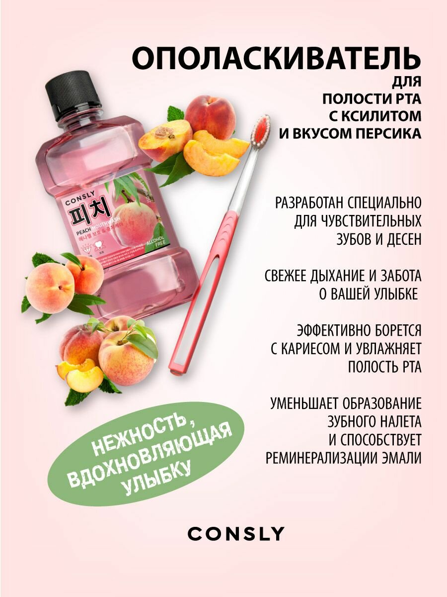 Купить Ополаскиватель для полости рта Consly с ксилитом и вкусом персика, 250 мл