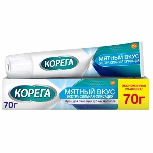 Корега Экстра Сильный Мятный крем для всесторонней фиксации съемных зубных протезов до 12 часов, мятная свежесть, 70 г