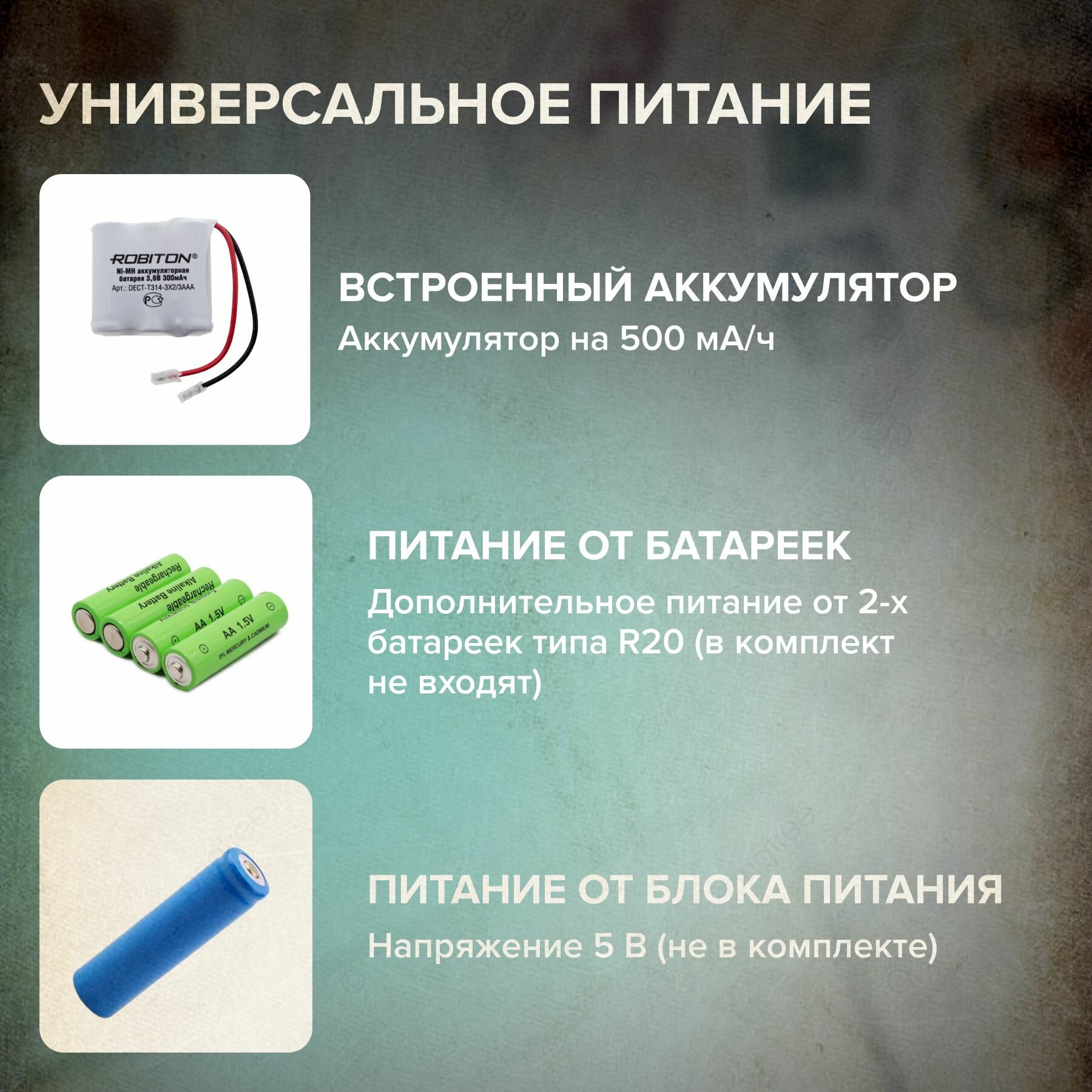 | Тип элементов питания | AA / D / встроенный |