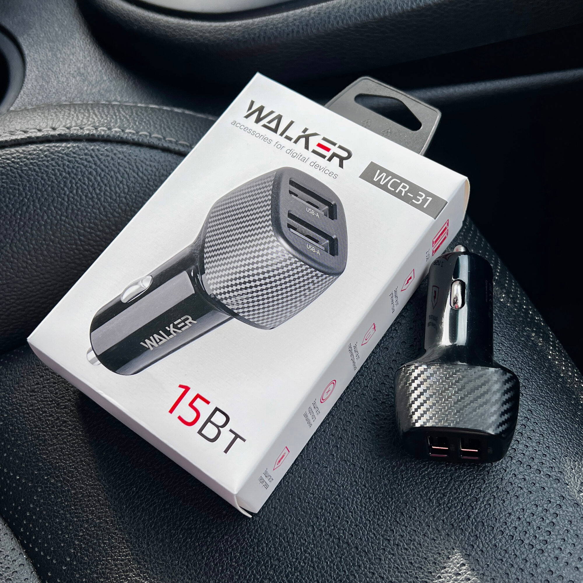 Зарядка в прикуриватель, WALKER, WCR-31, 15Вт, USBx2, зарядка в автомобиль, зарядка для айфона, зарядка для телефона, зарядное устройство, черное