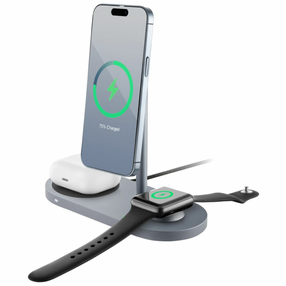 Беспроводное зарядное устройство uBear Balance 3 в 1, MagSafe, 25 Вт, серый (WL09SG31-ADM)