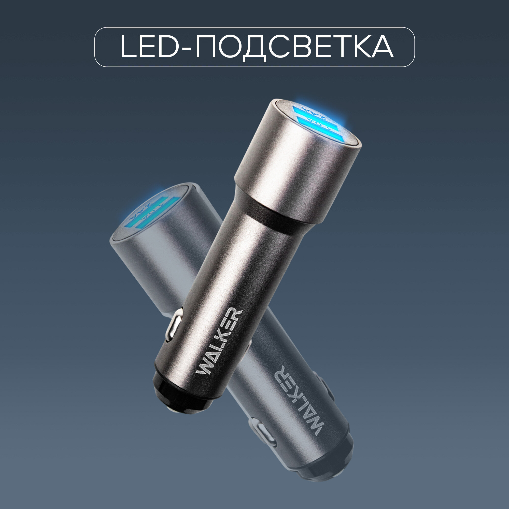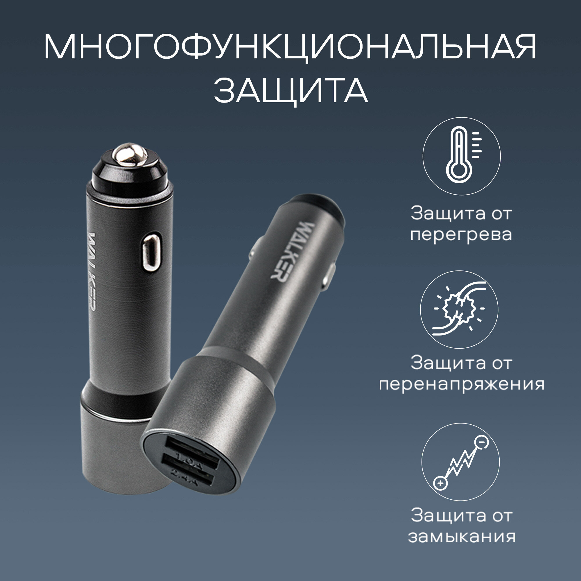 СохранитьЗарядка в прикуриватель, WALКЕR, WCR-22, 12Вт, удлиненный корпус, 2 USB, 2.4А, зарядка в машину, зарядка для айфона, адаптер питания, серый интересное: