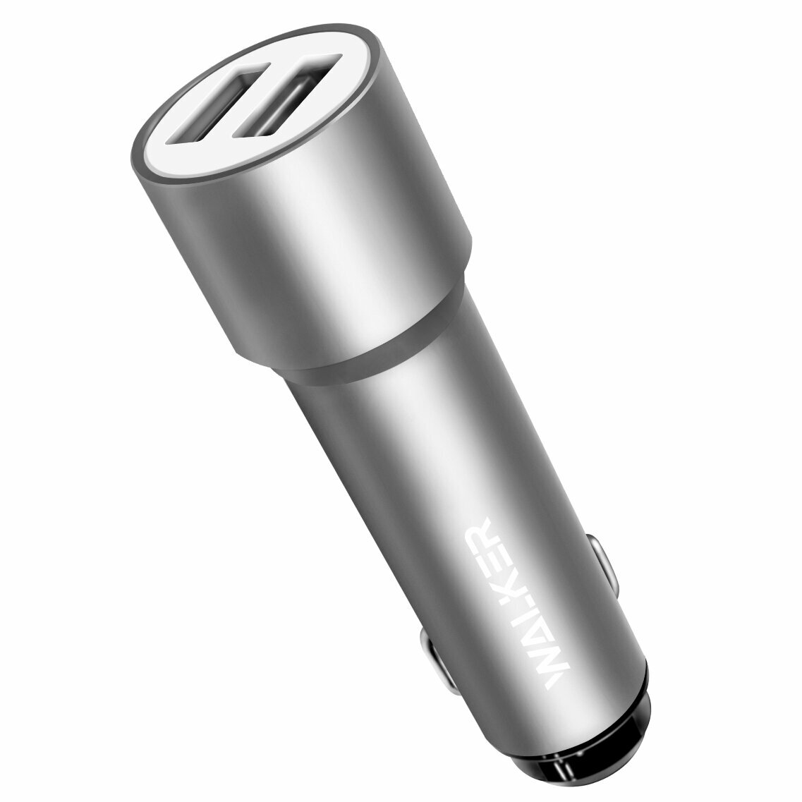 Купить Зарядка в прикуриватель, WALКЕR, WCR-22, 12Вт, удлиненный корпус, 2 USB, 2.4А, зарядка в машину, зарядка для айфона, адаптер питания, серебристый
