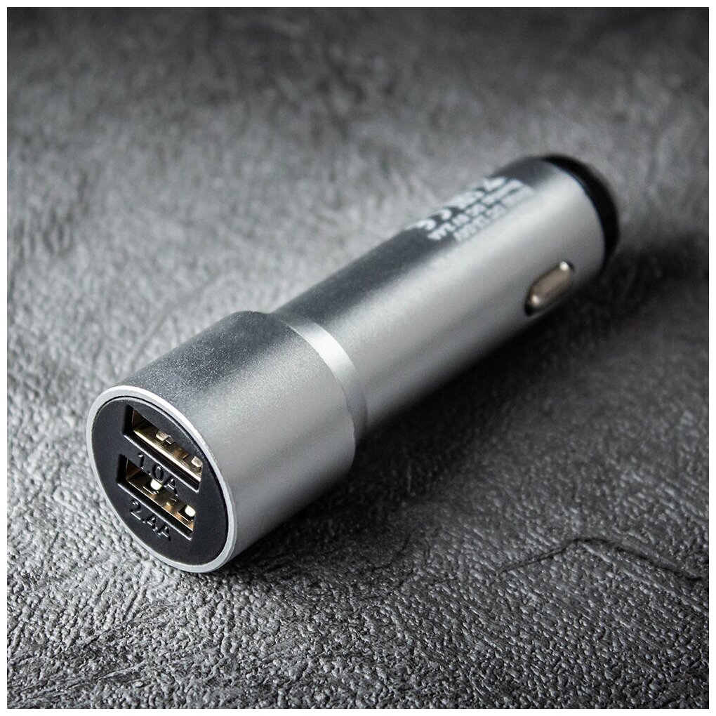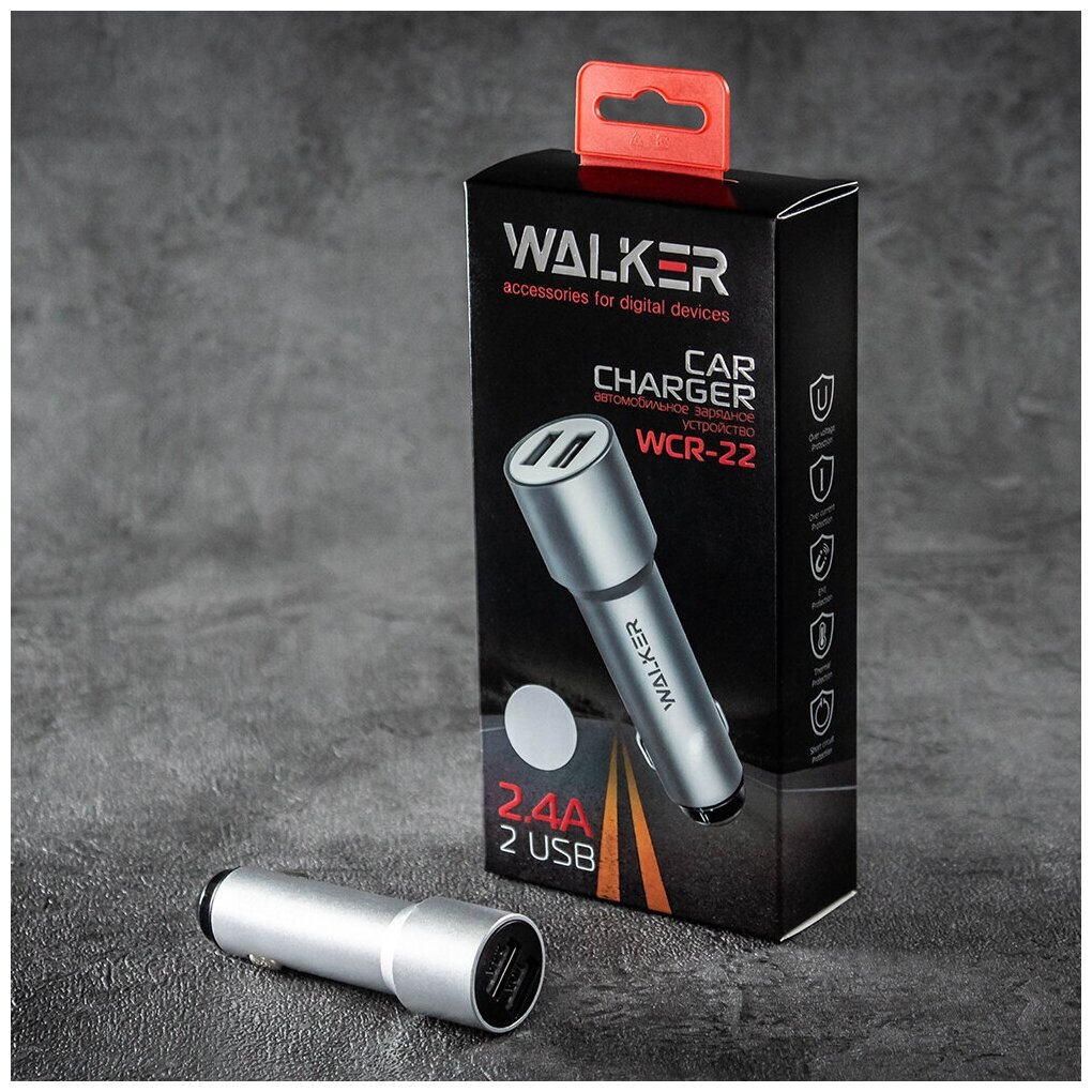 Зарядка в прикуриватель, WALKER, WCR-22, 12Вт, удлиненный корпус, 2 USB, 2.4А, зарядка в машину, зарядка для айфона, адаптер питания, серый