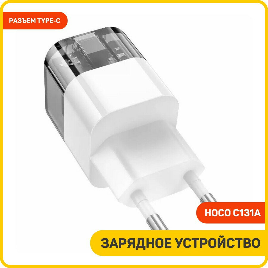 Сетевое зарядное устройство HOCO C111A 1xUSB + 1xUSB Type-C с кабелем Type-C - Type-C, 3.0A, 30W, белый