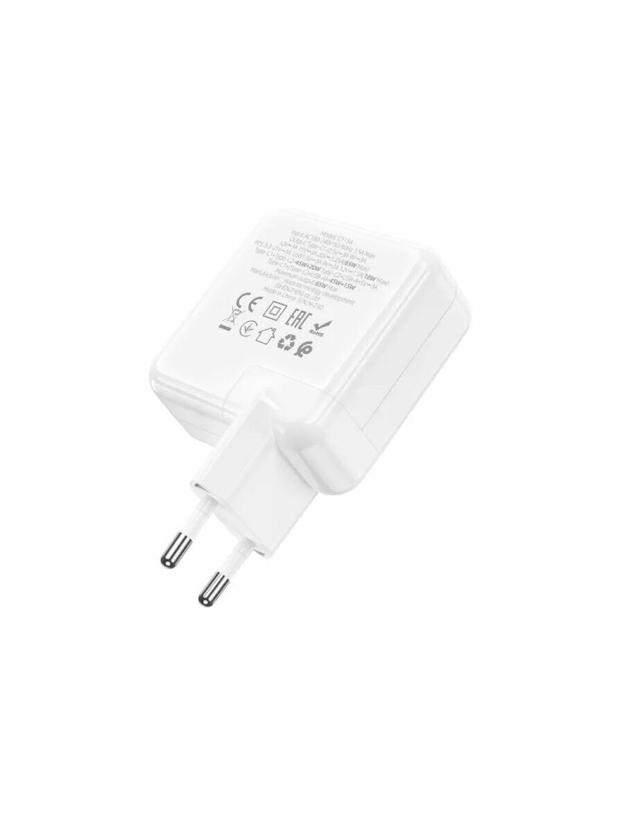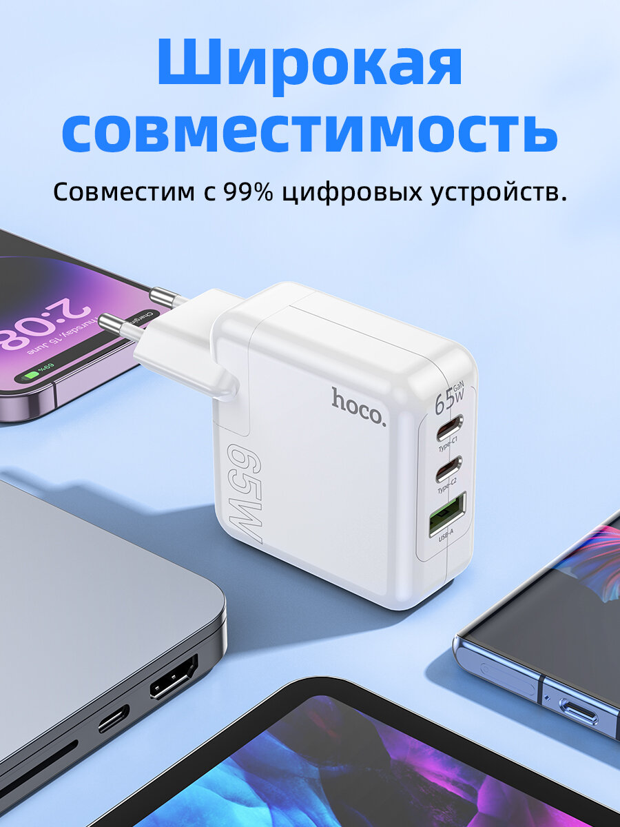 СохранитьСетевое зарядное устройство c USB A+2xType-C HOCO C115A,QC 3.0,PD 65W, белый интересное: