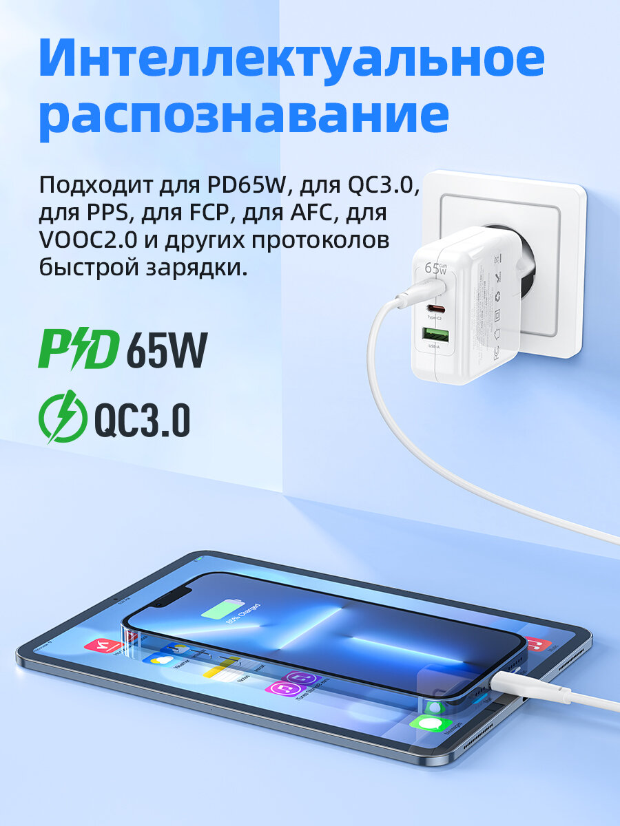 | Особенности | GaN / Быстрая зарядка / зарядный комплект / защита от перегрева / защита от перенапряжения / кабель в комплекте |