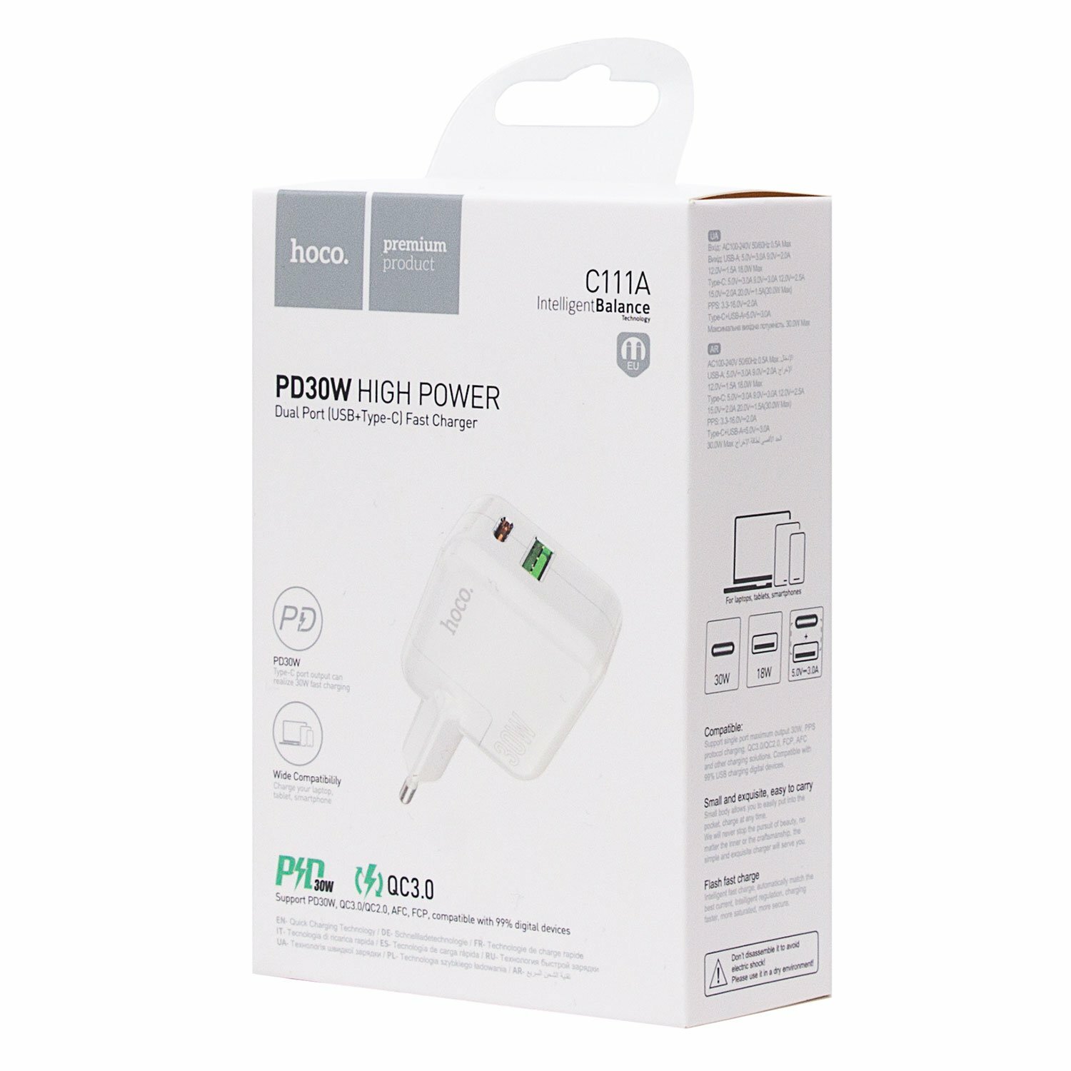 Сетевое зарядное устройство Hoco C111A PD30W+QC3.0 White