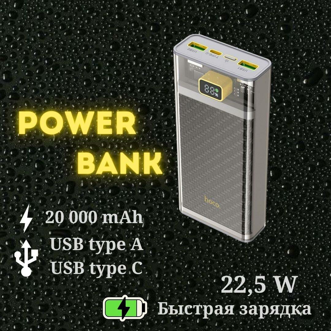 Универсальный Доп. Аккумулятор 20000mAh, J103A, HOCO, выход: 2 USB (22.5W)+1 PD (20W), серый