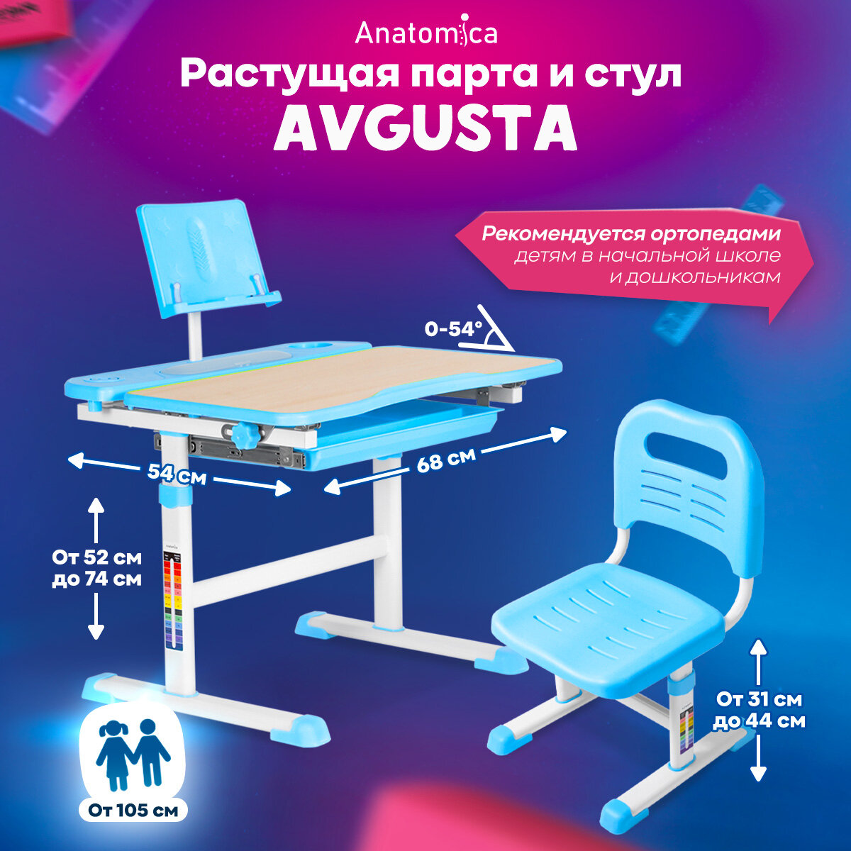 Комплект парта и стул Anatomica Avgusta клен/голубой интересное: