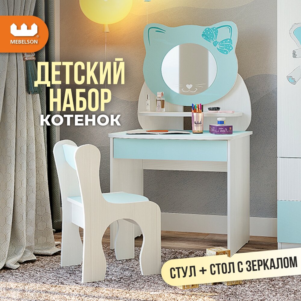 Детский набор (трюмо + стул) "Котенок", цвет Белый рамух/кэнди, Mebelson интересное: