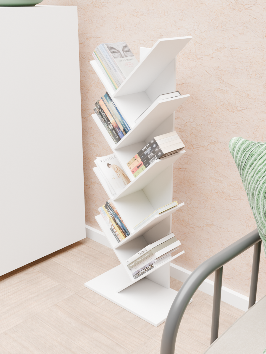 Полка напольная для книг, из материала ЛДСП, 69 см, белого цвета