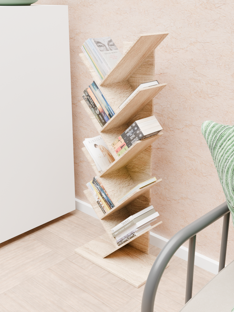 Купить Полка напольная деревянная для книг от бренда "Мебель от Прудникова", 114 см, дуб сонома