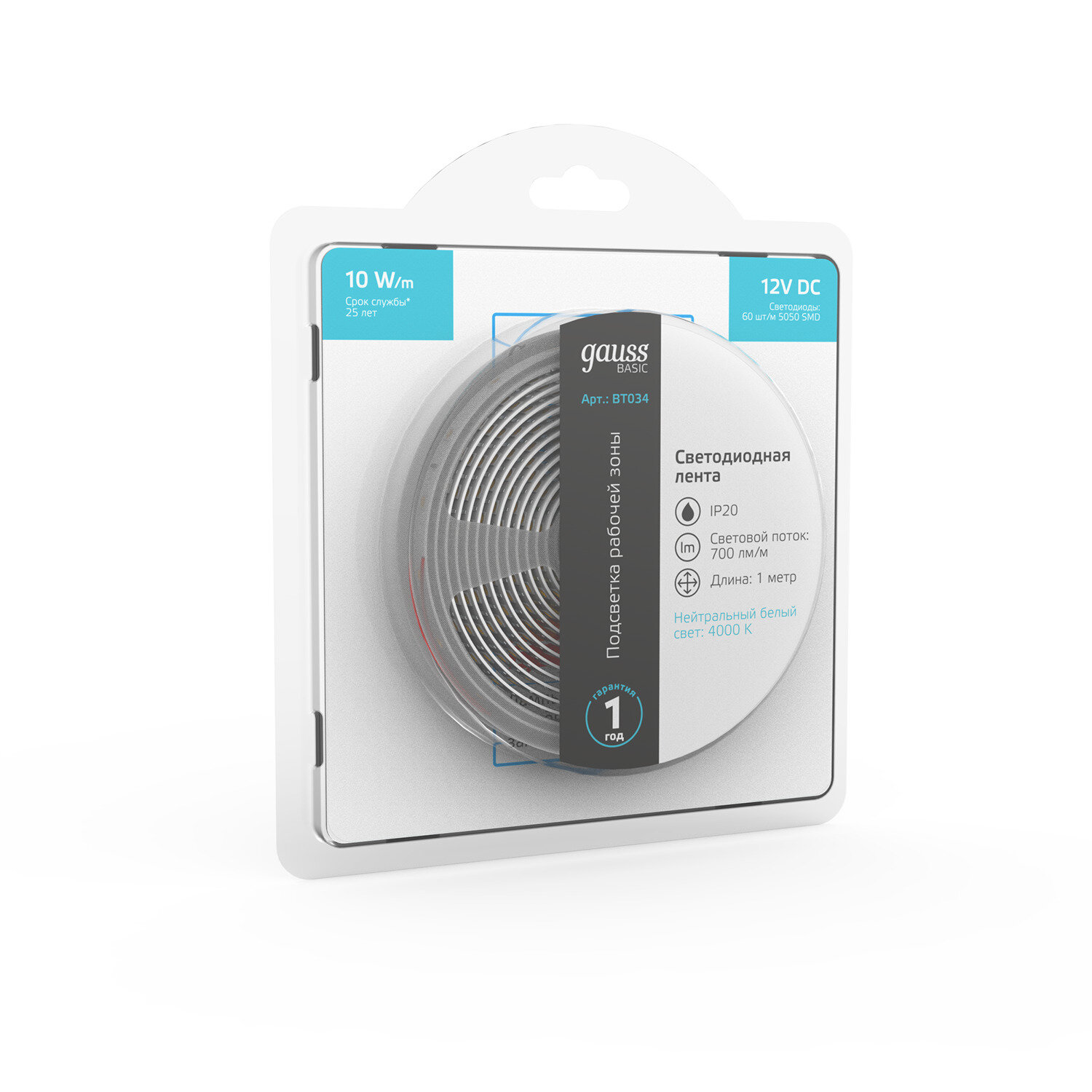 Лента Gauss Basic LED 5050/60 12V 10W/m 700lm/m 4000K 10mm IP20 1m