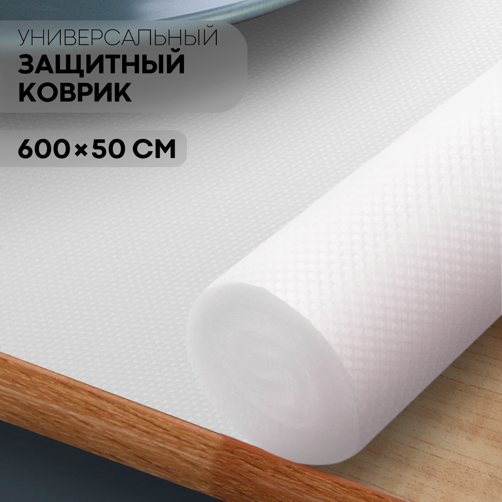 Водостойкий противоскользящий ПВХ коврик-подстилка для кухонных полок, ящиков, холодильника (универсальный 150 см х 60 см в рулоне), белый
