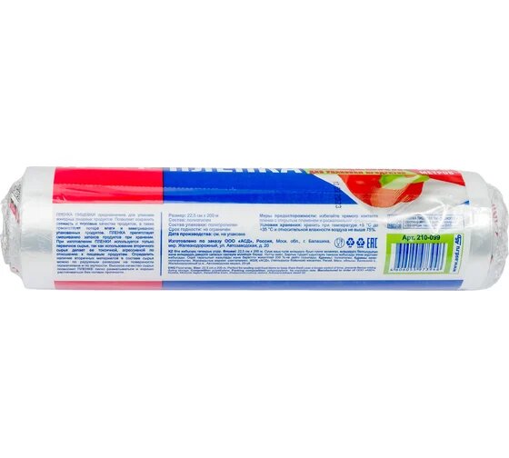 | Дополнительная информация | Пищевая плёнка 1 рулон - 30см х 200м |