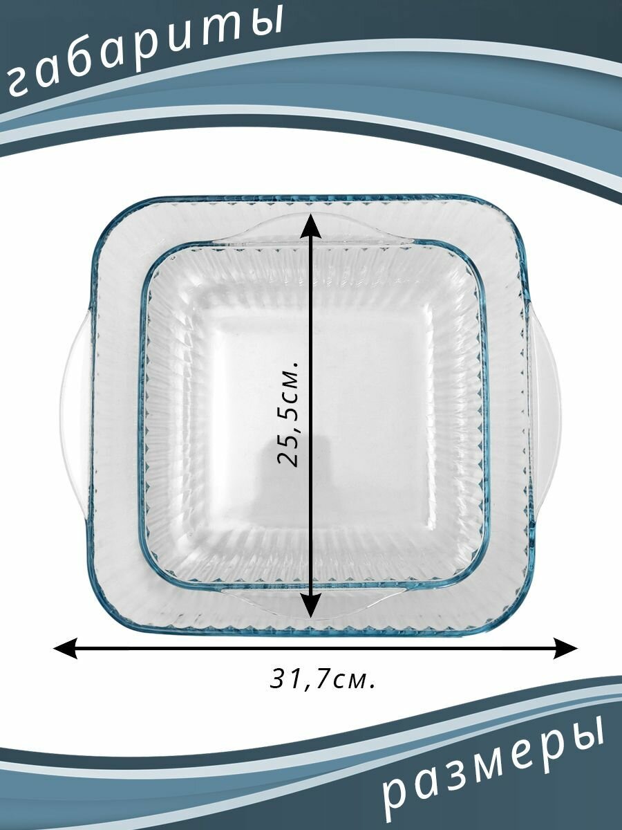 Стеклянная форма для запекания жаропрочная квадратная 1.95 л