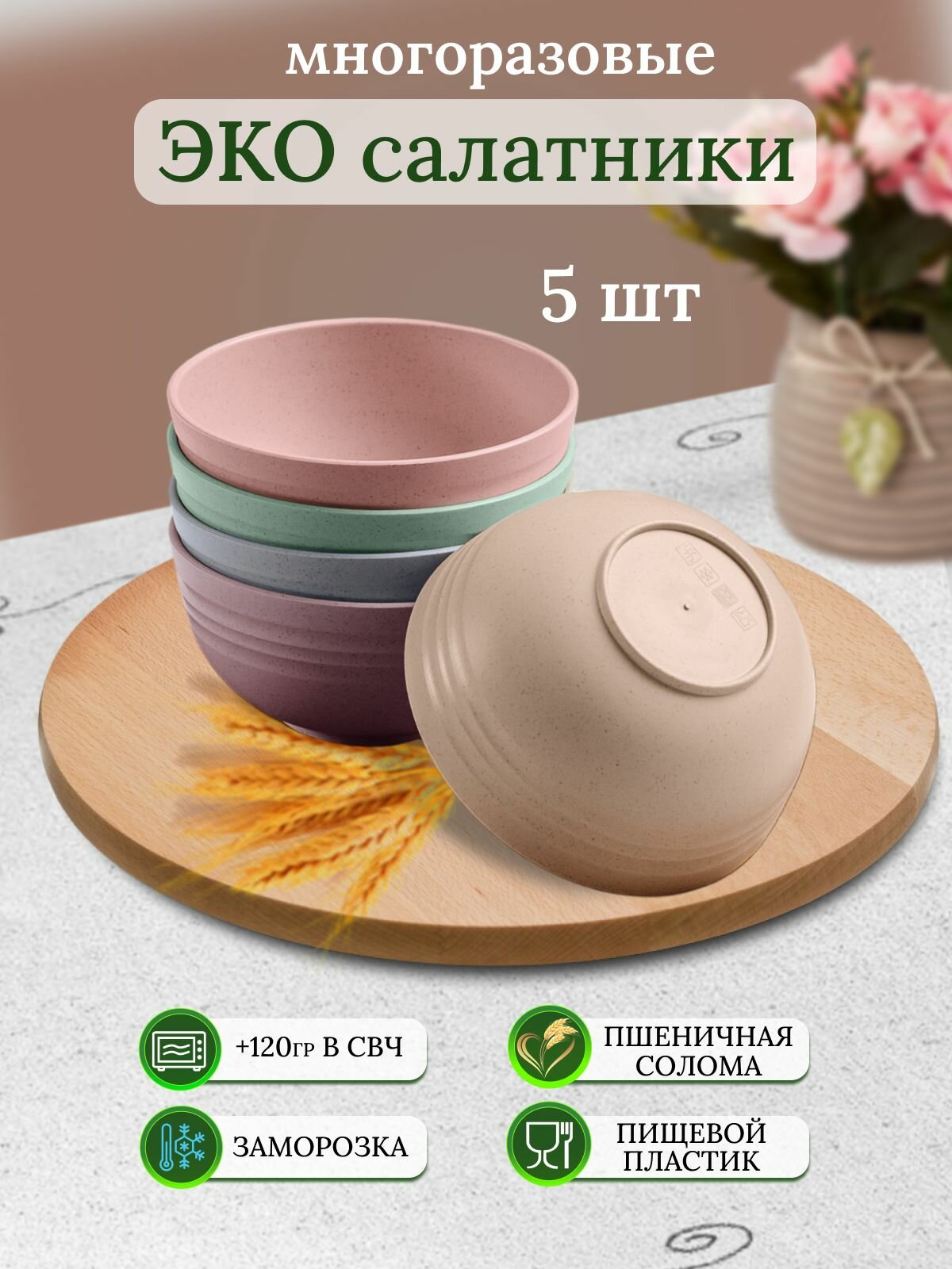 Набор мисок глубоких, салатники из пшеничной соломы 12см 5шт. интересное: