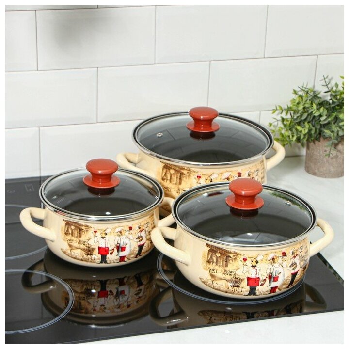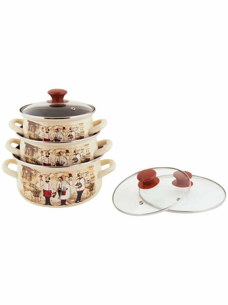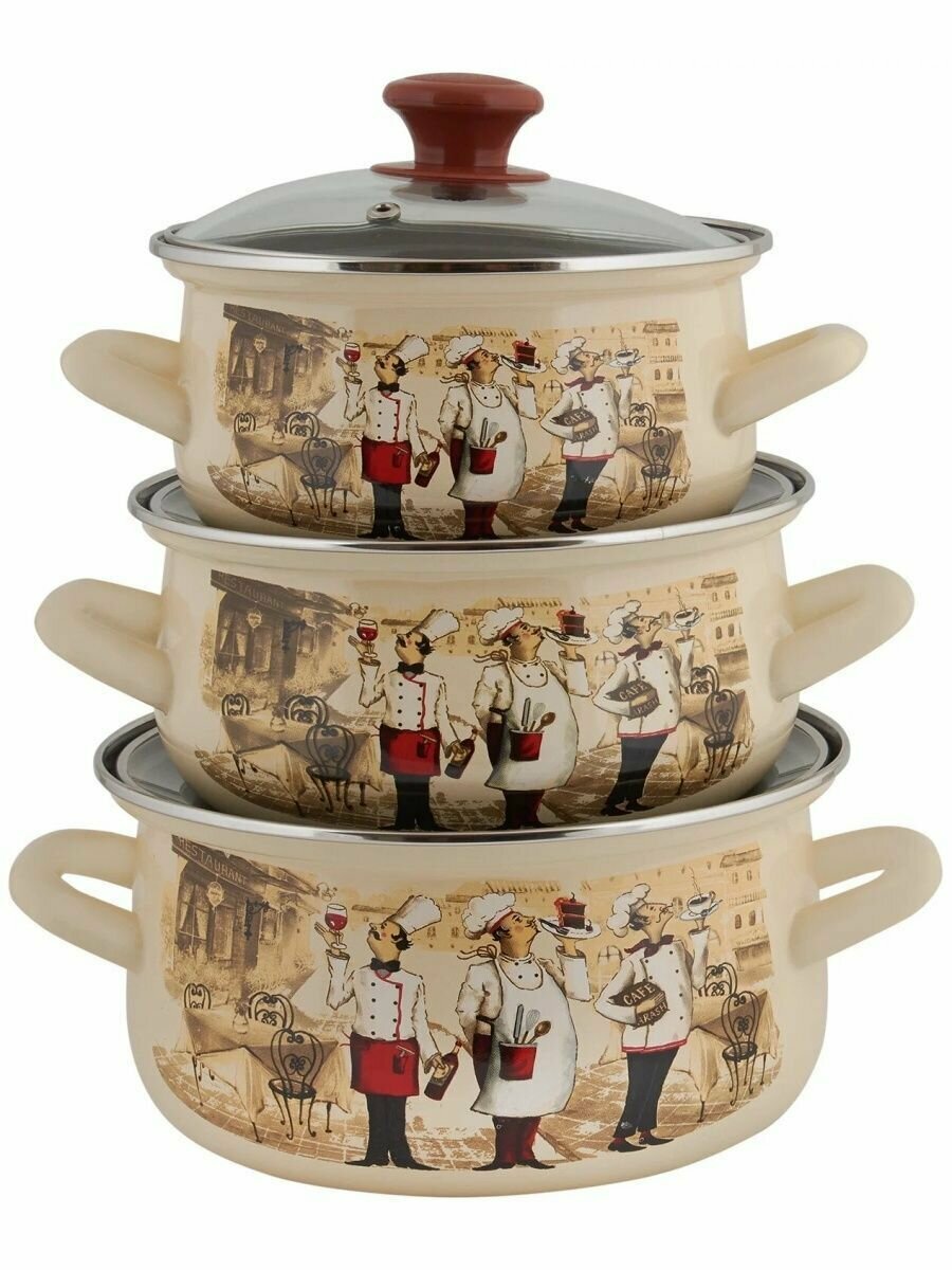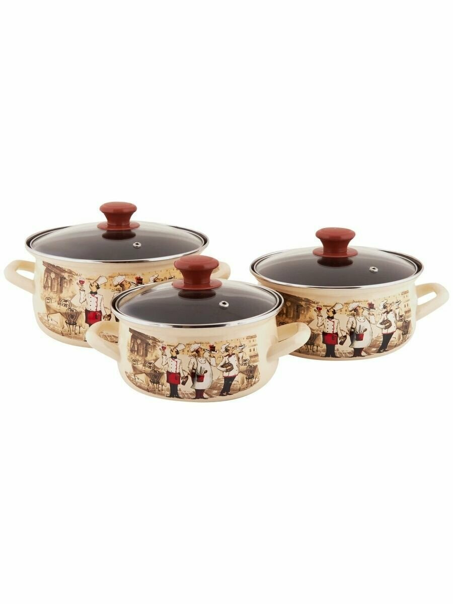 Набор эмалированных кастрюль Версаль, 3 шт